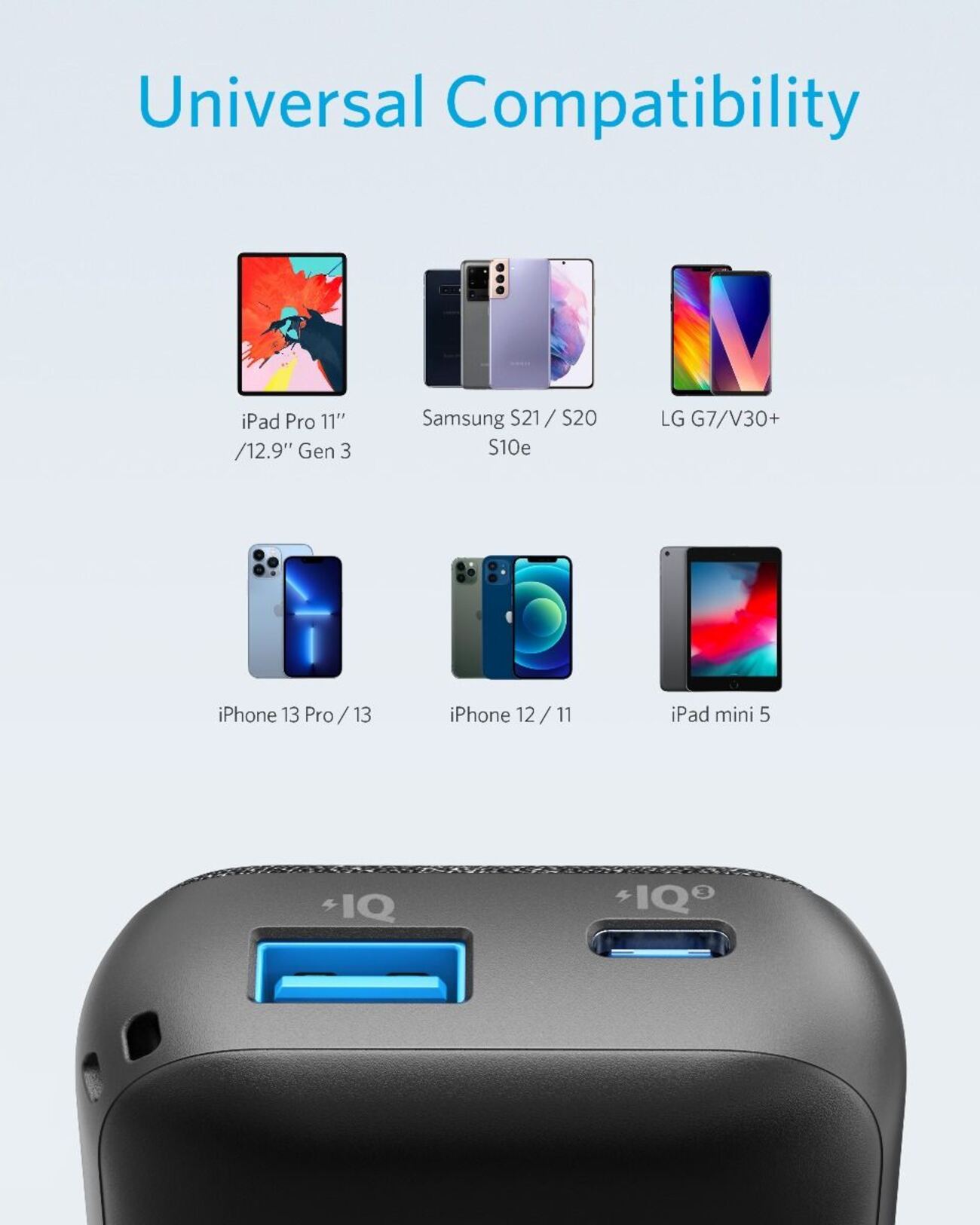 25W power delivery USB-C port, power iQ-enabled USB-A port, and Trickle- Charging mode for low-power devices.