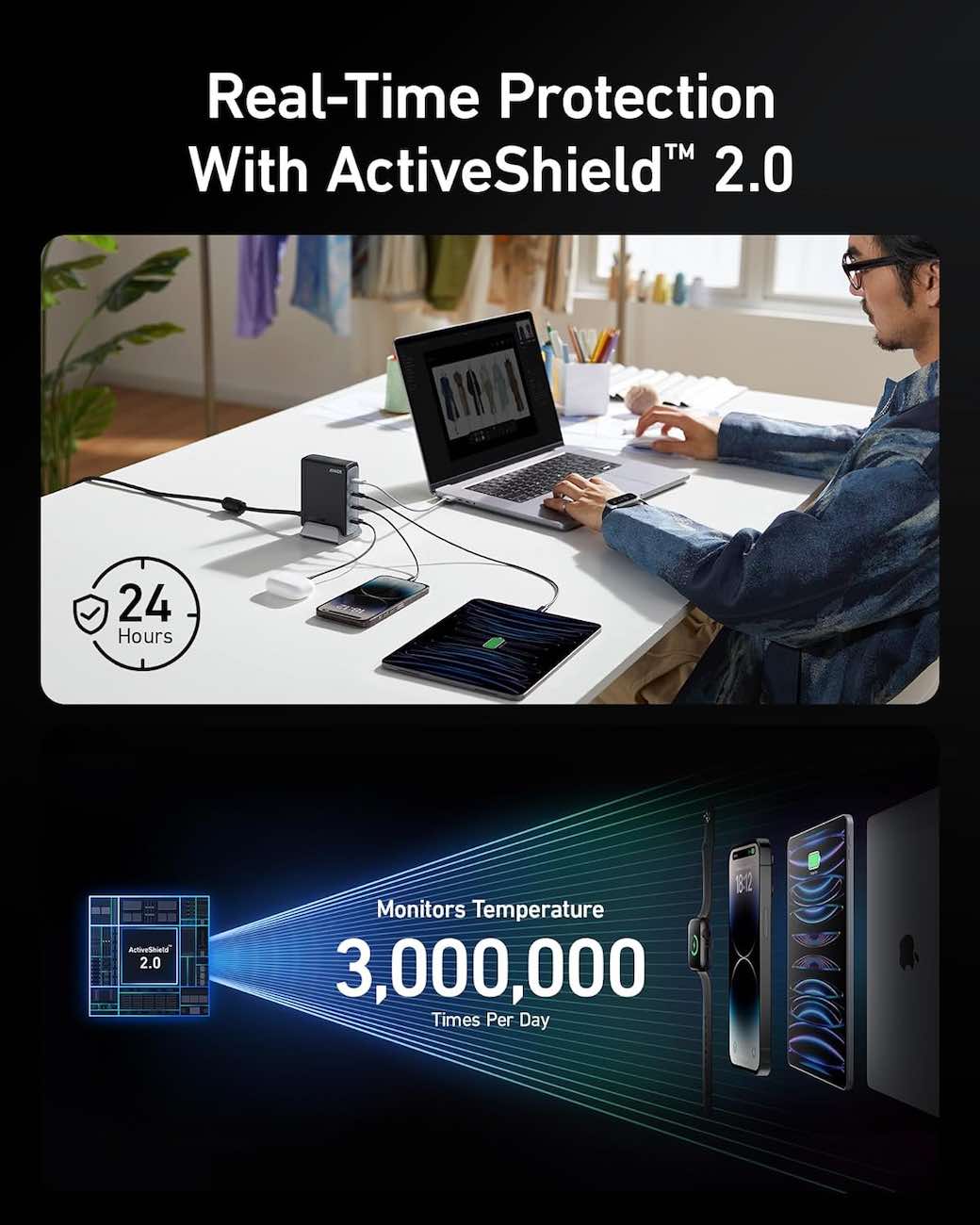 Features ActiveShield 2.0 technology to prevent the charger from overheating beyond normal limits.