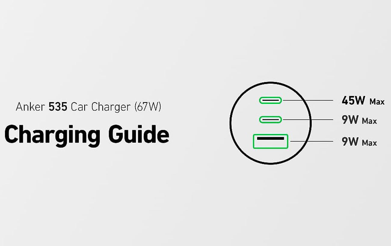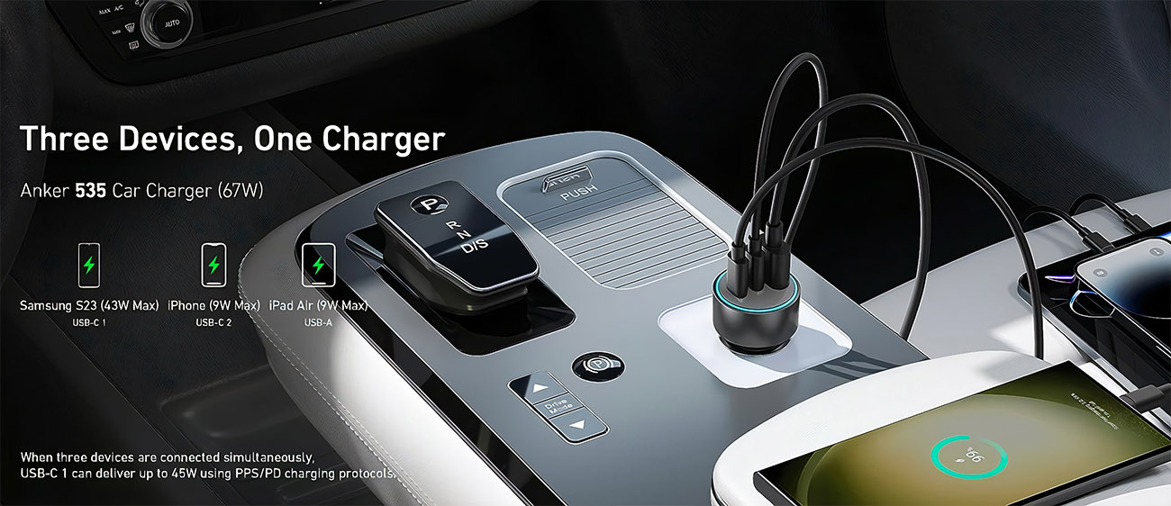 Anker 335 New Car Charger / 67W Power / Charges 3 devices / Suitable for charging laptops