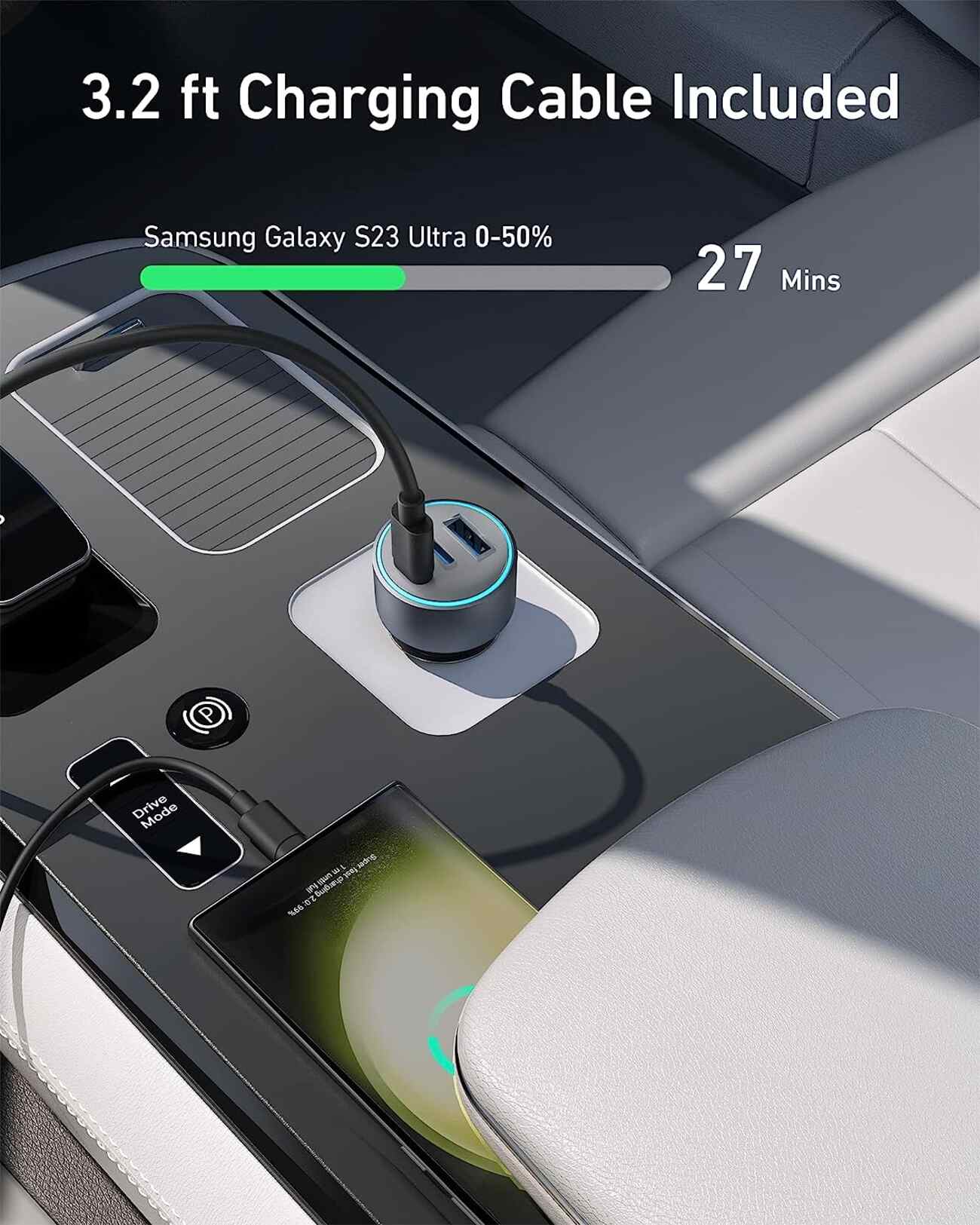 A robust car charger that can power both laptops and smartphones.