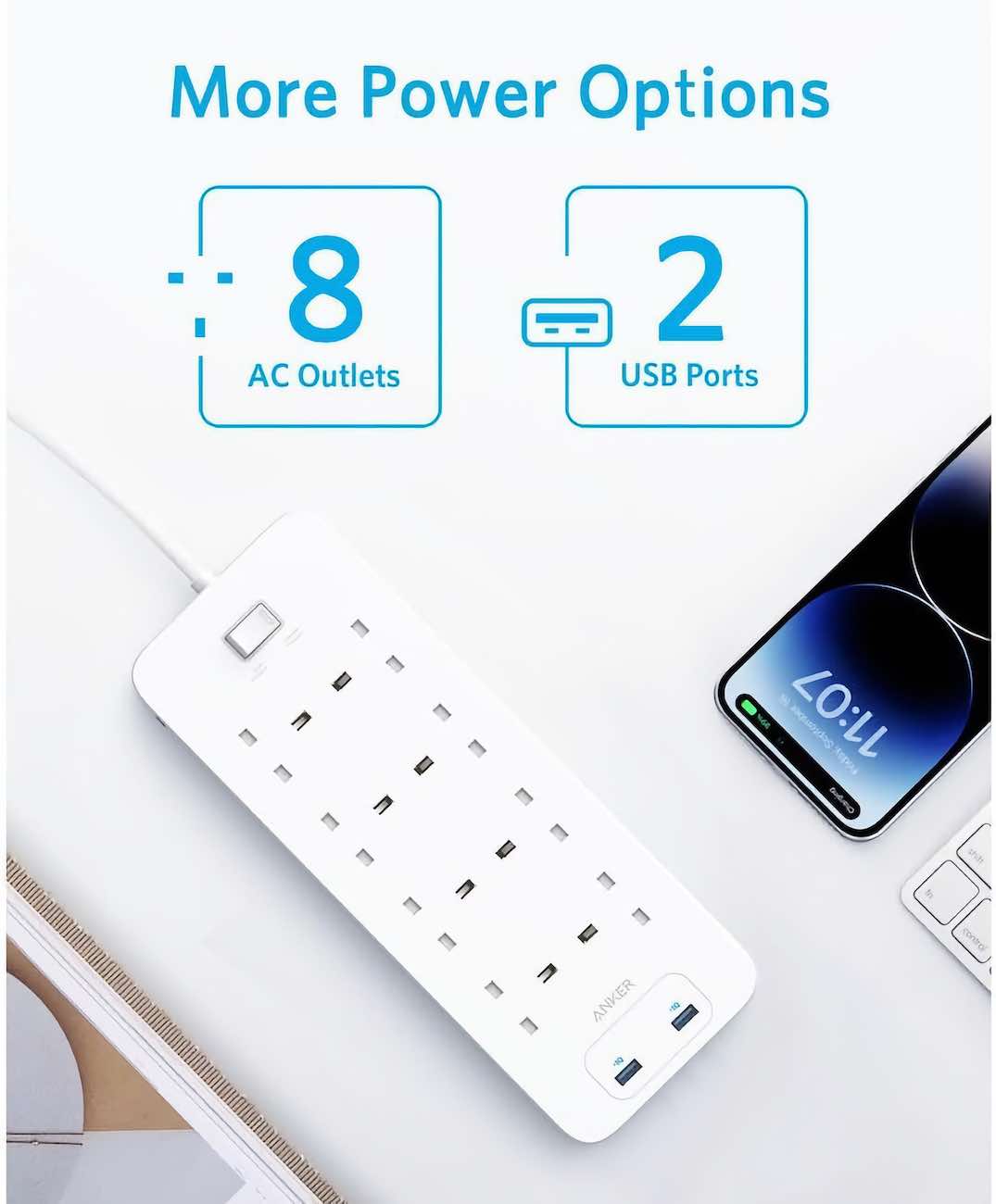 Includes 8 AC ports.