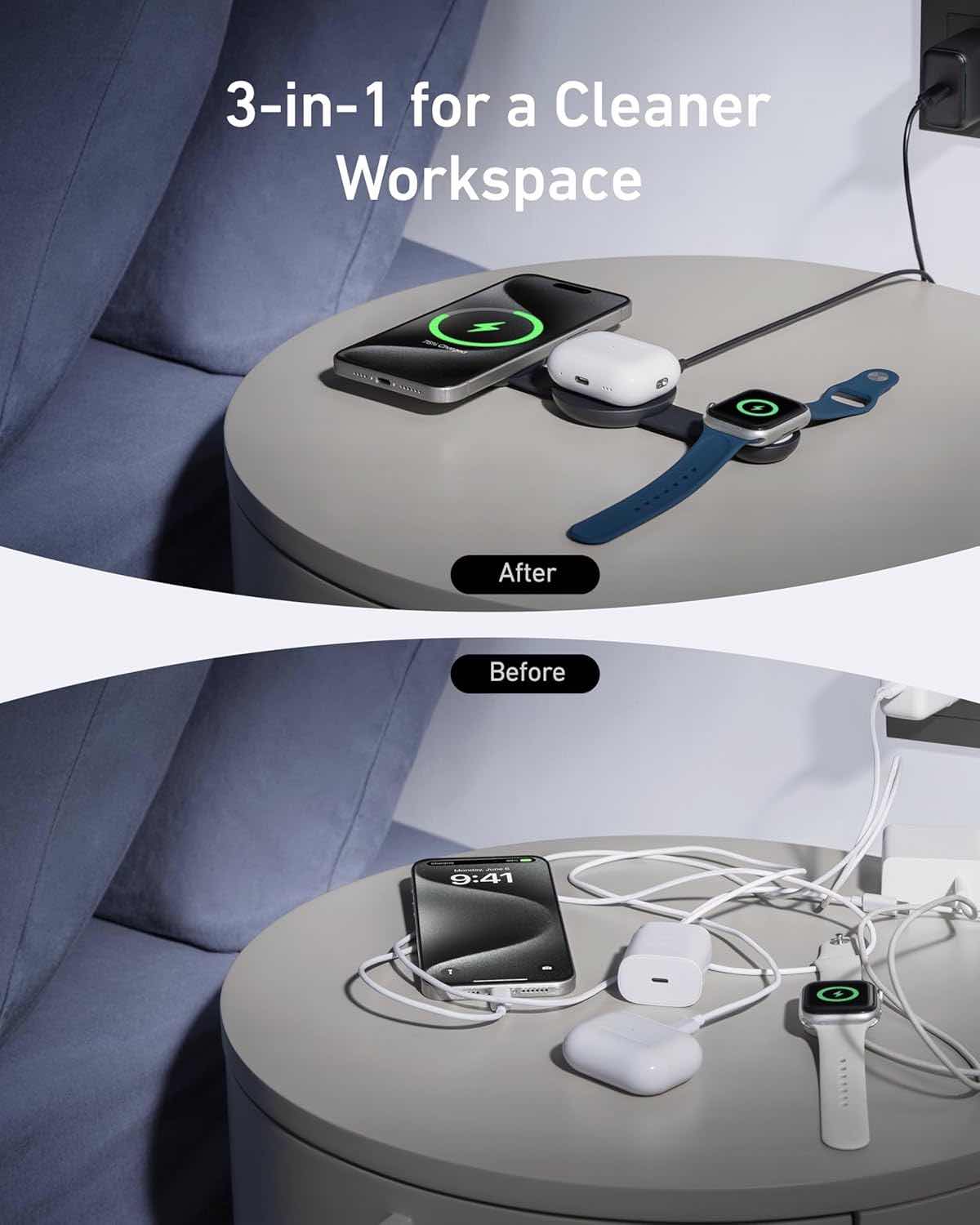 3-in-1 design – charges your iPhone .. AirPods .. and Apple Watch simultaneously.