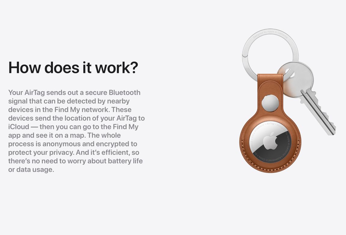 All communication with the Find My network is anonymous and encrypted for privacy, Location data and history are never stored on AirTag.