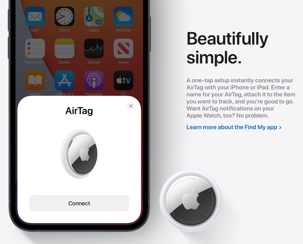 Simple one-tap setup instantly connects AirTag with your iPhone or iPad.