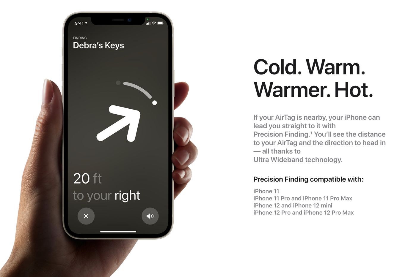 Precision Finding with Ultra Wideband technology leads you right to your nearby AirTag.