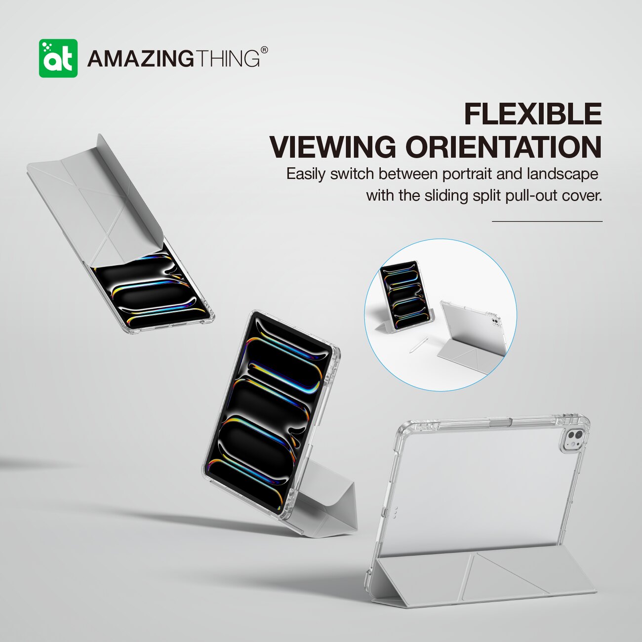 Transparent back with a flexible front cover that can be adjusted to suit your preferred angles.