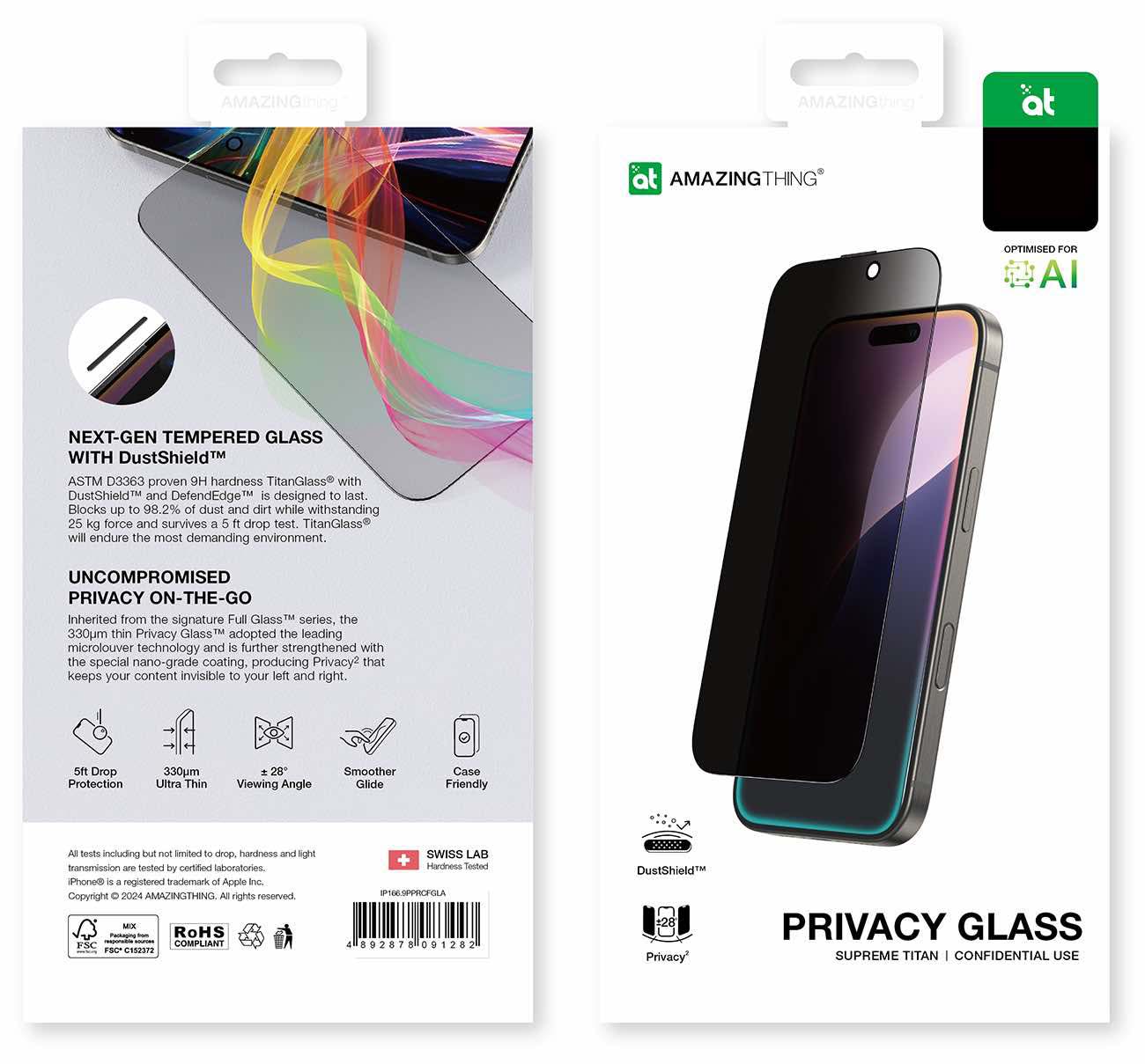 Strong privacy glass .. making the screen hidden from side views.