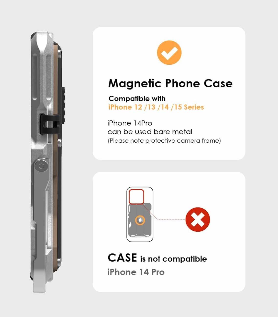 Magnetically attaches to phones that support MagSafe .. including iPhone 12 .. 13 .. 14 .. and 15.