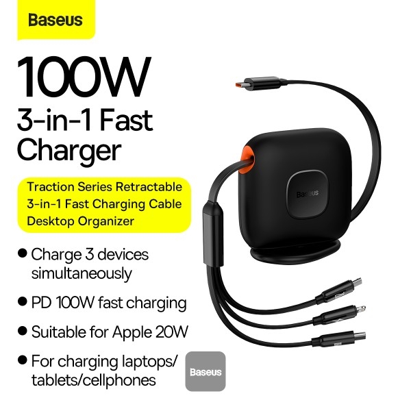 Provides 3 different wires: Micro USB, Lightning, and Type-C.