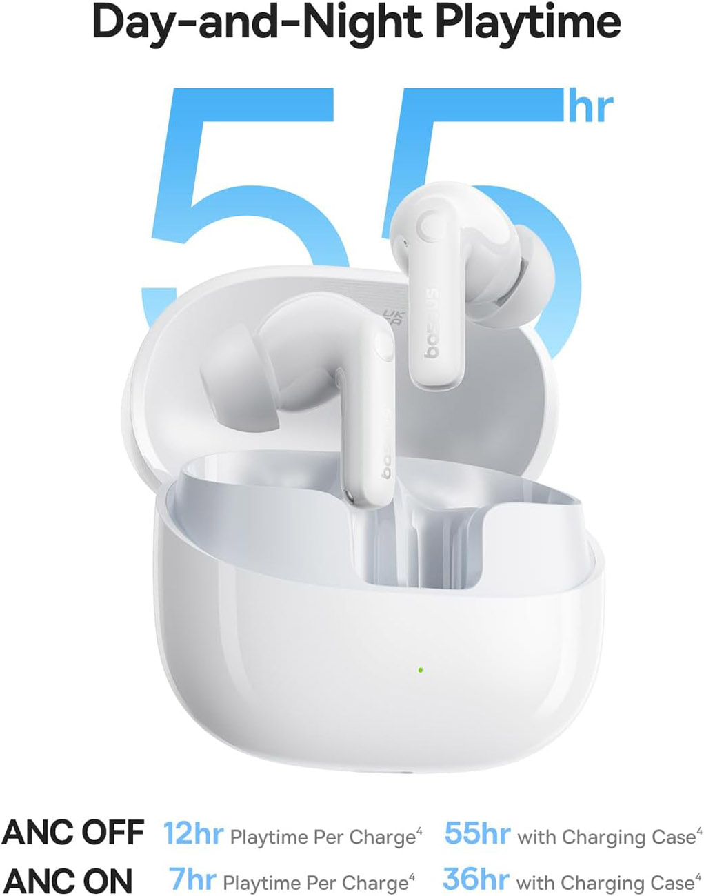 Provides 12 hours of playtime .. with the case offering additional charges .. up to 55 hours total listening time.