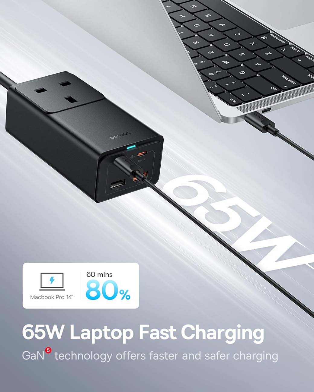 Operates with 65W power and GaN5 Pro technology .. preventing overheating while ensuring fast and powerful charging.