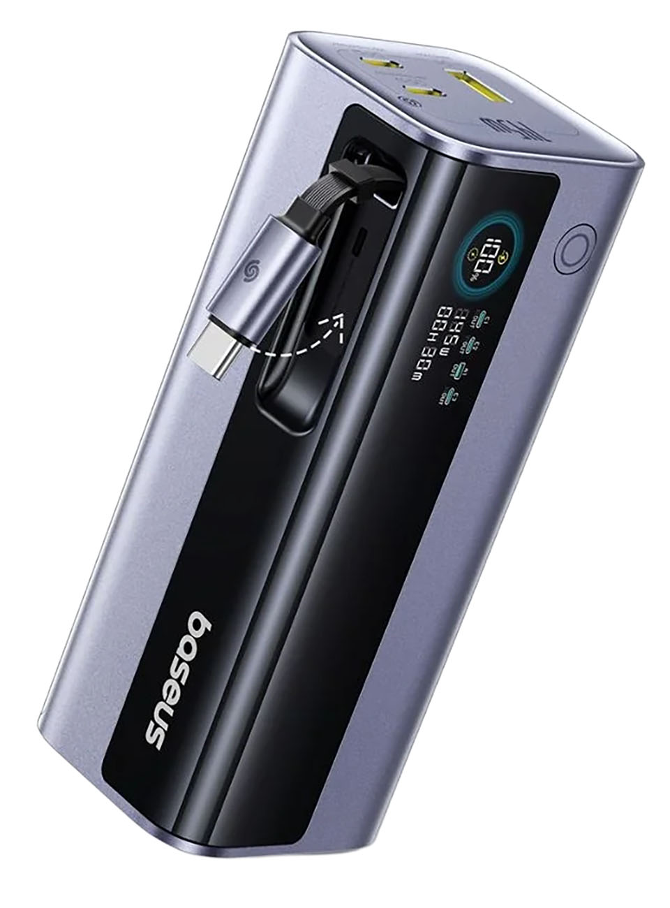 Built-in Type-C cable providing 100W charging power.