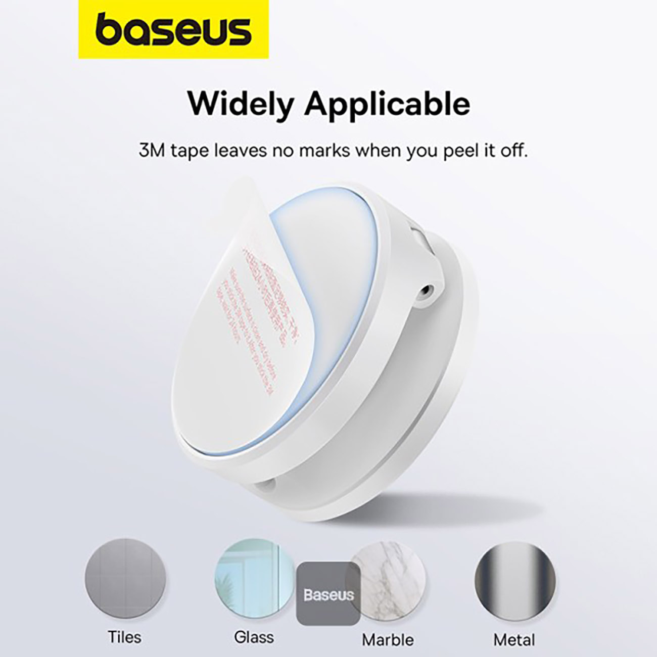 Stand base has adhesive … lets you mount it on different surfaces like glass, marble, wood, metal, and tile.