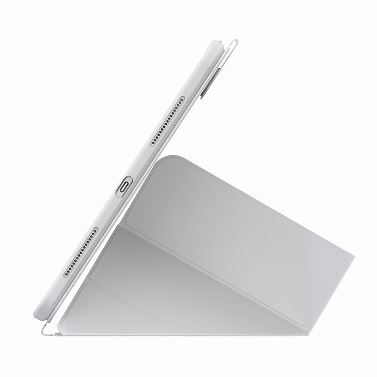 Front cover is foldable .. transforming into a multi-angle stand with a transparent back cover.
