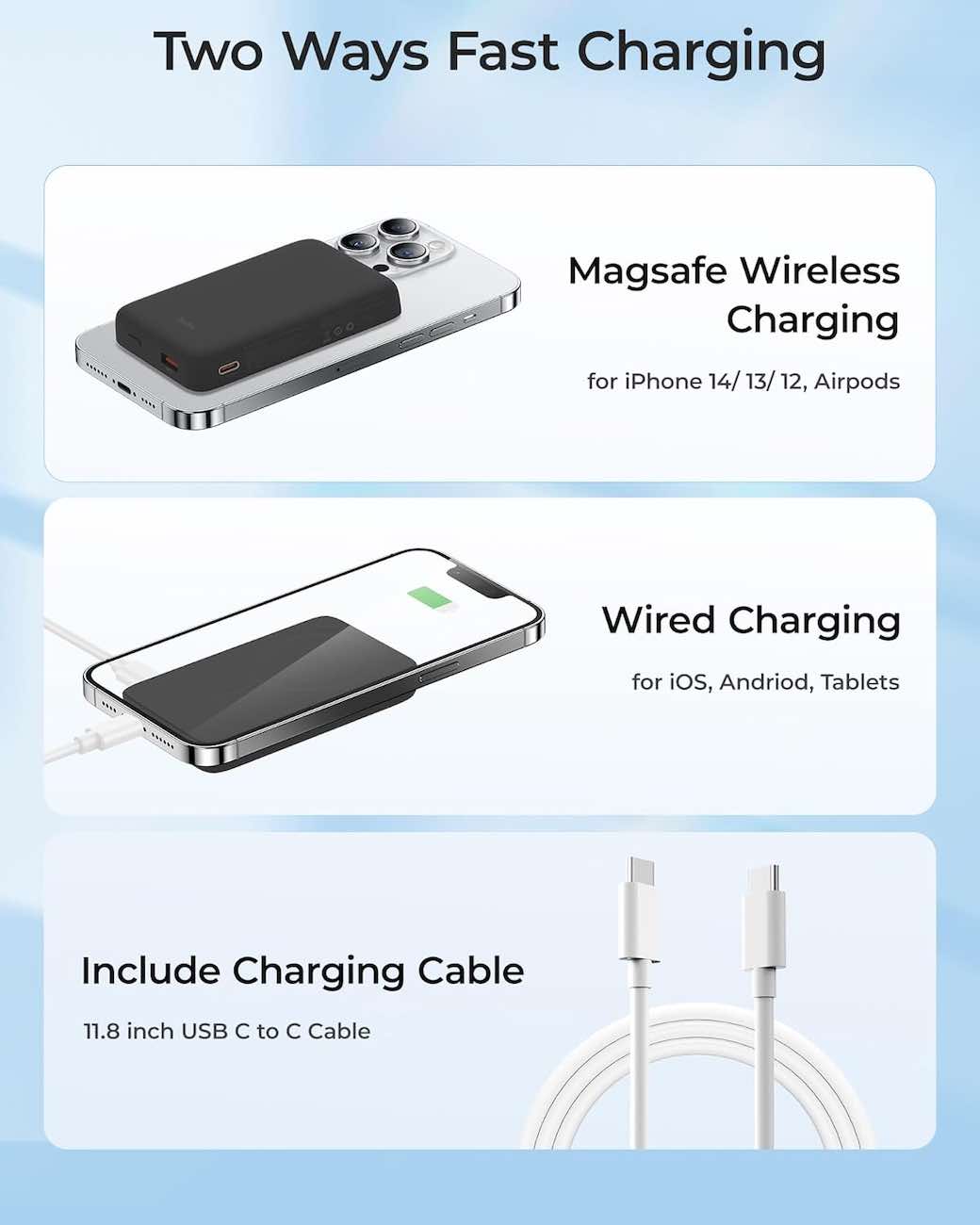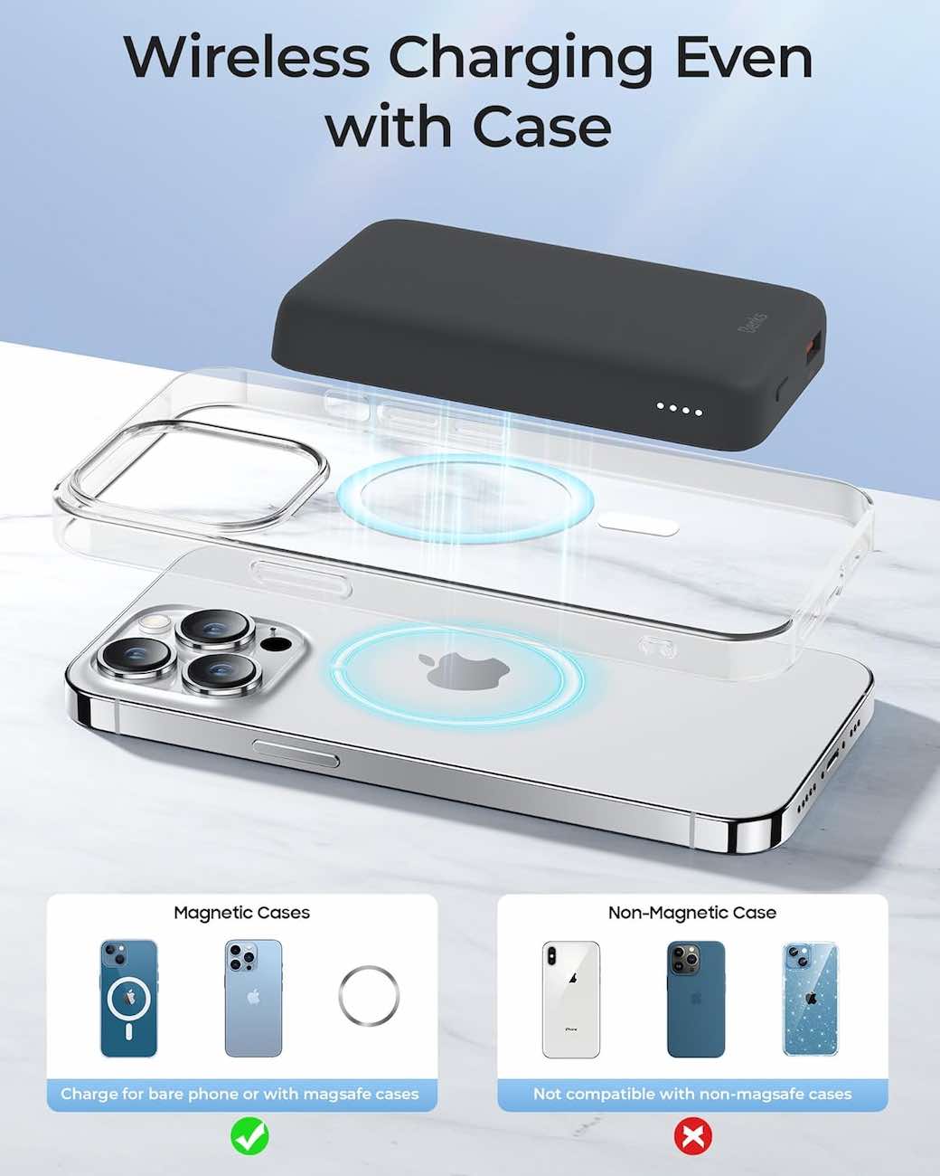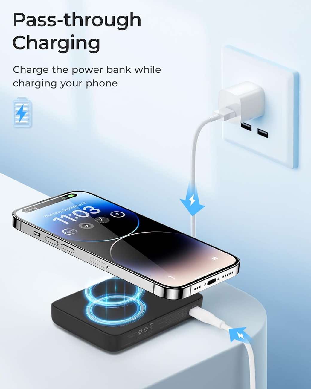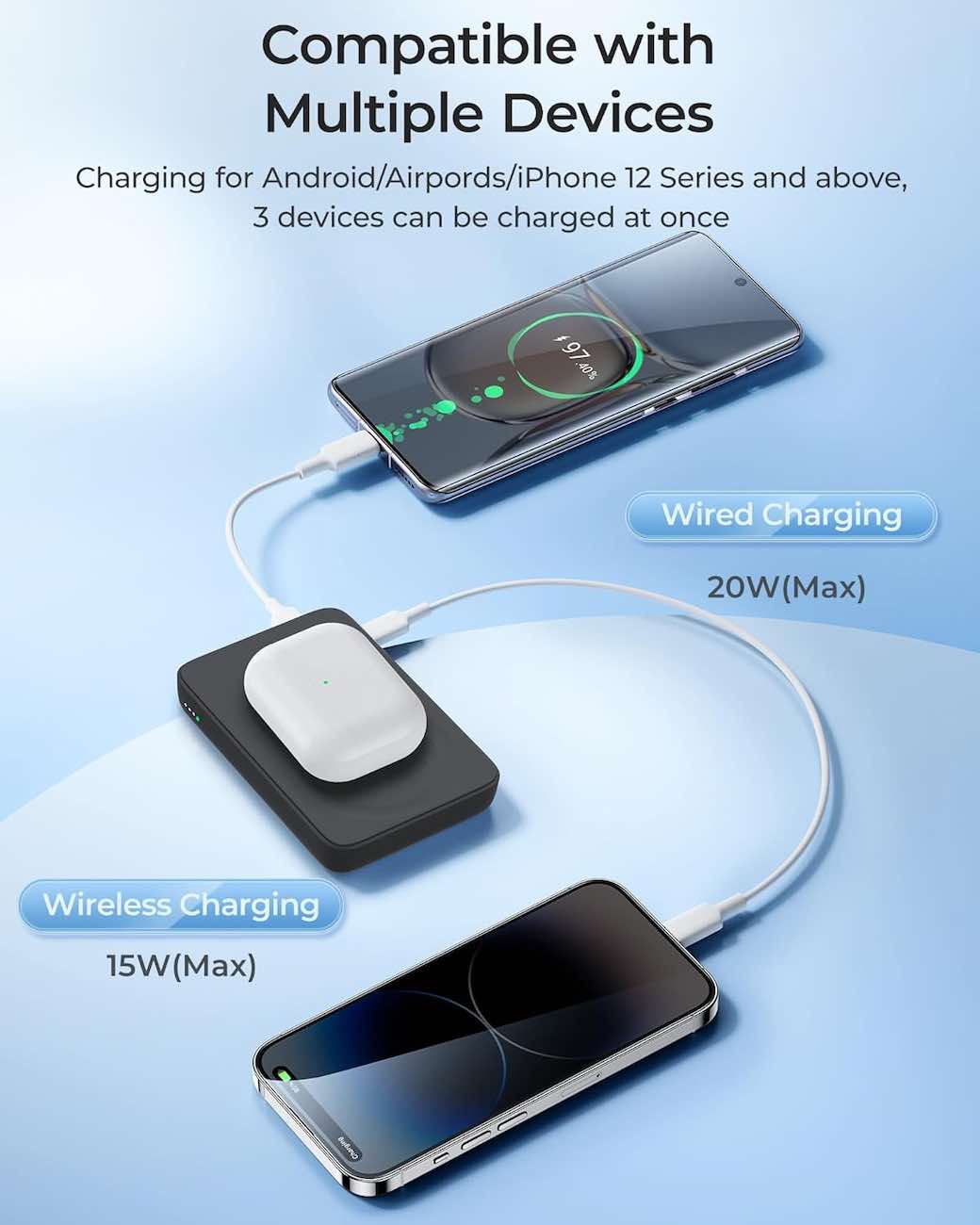 Supports simultaneous wired and wireless charging.