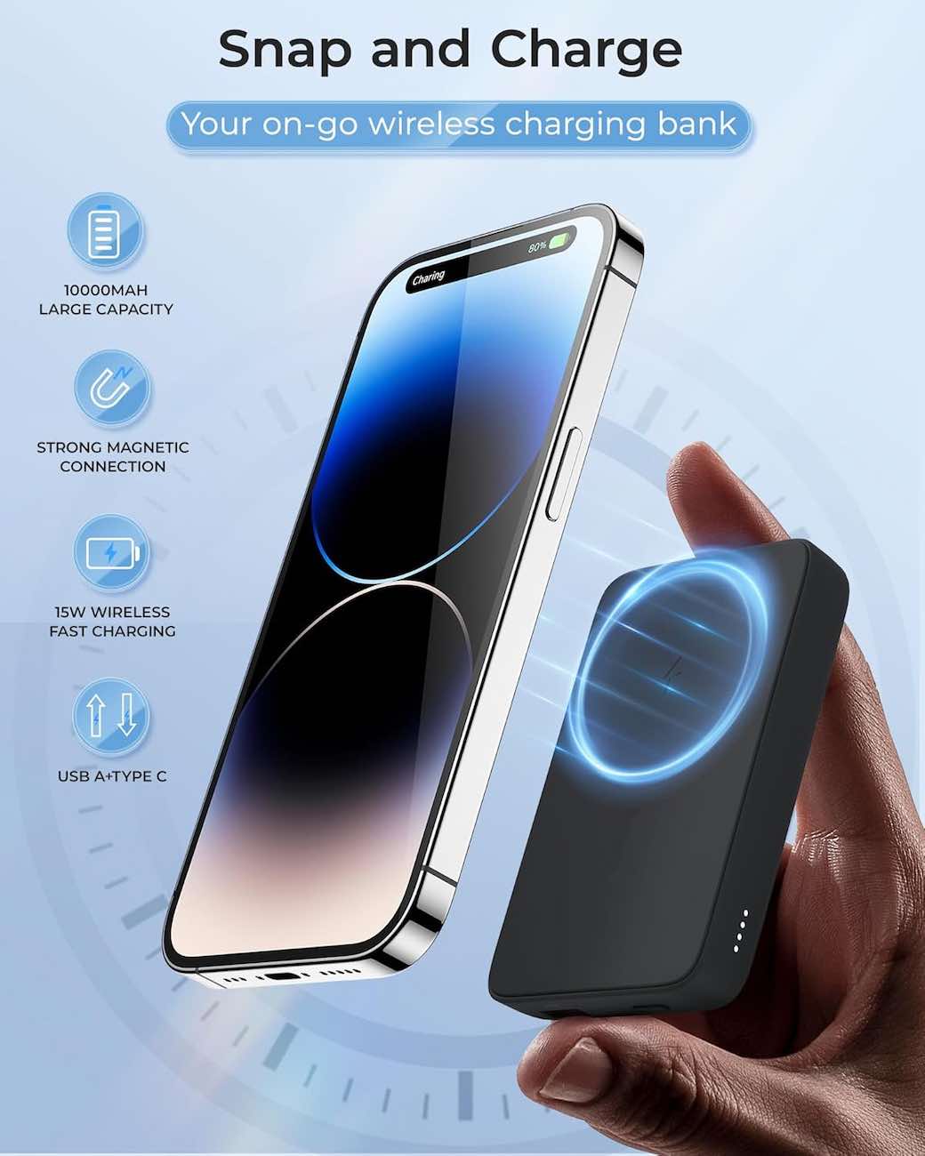 Attaches magnetically to the iPhone when brought close.