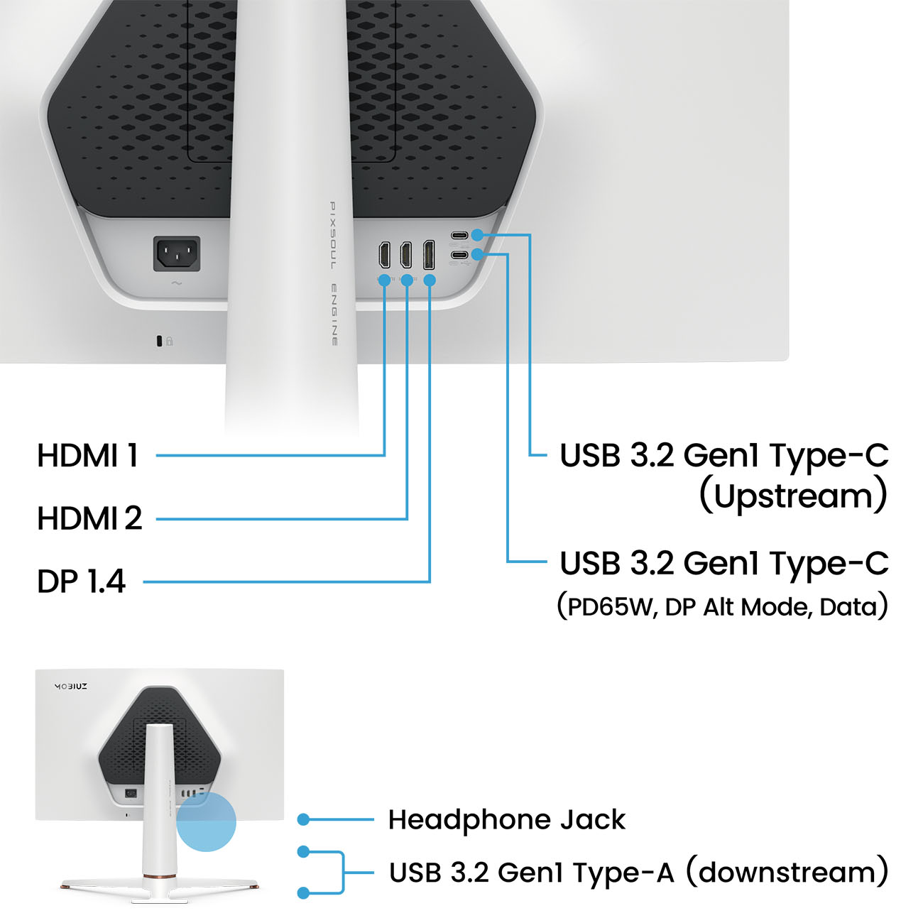 Ports: DP 1.4 .. HDMI 2.0 .. and a 65W PD USB-C port.