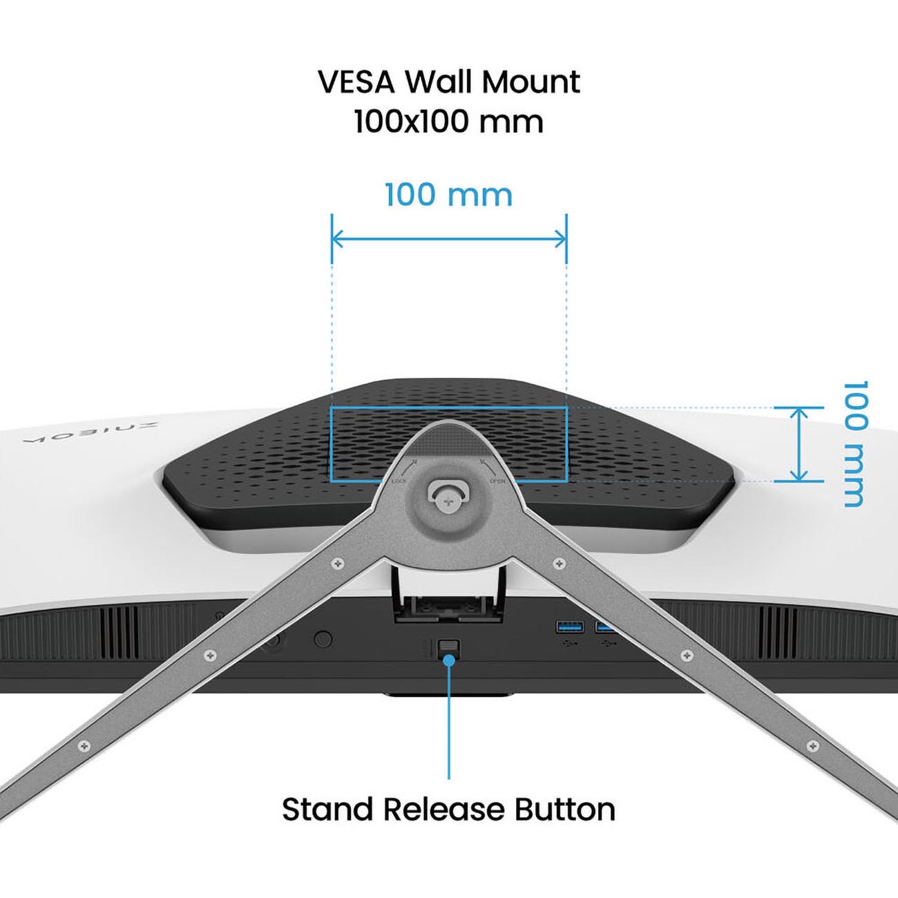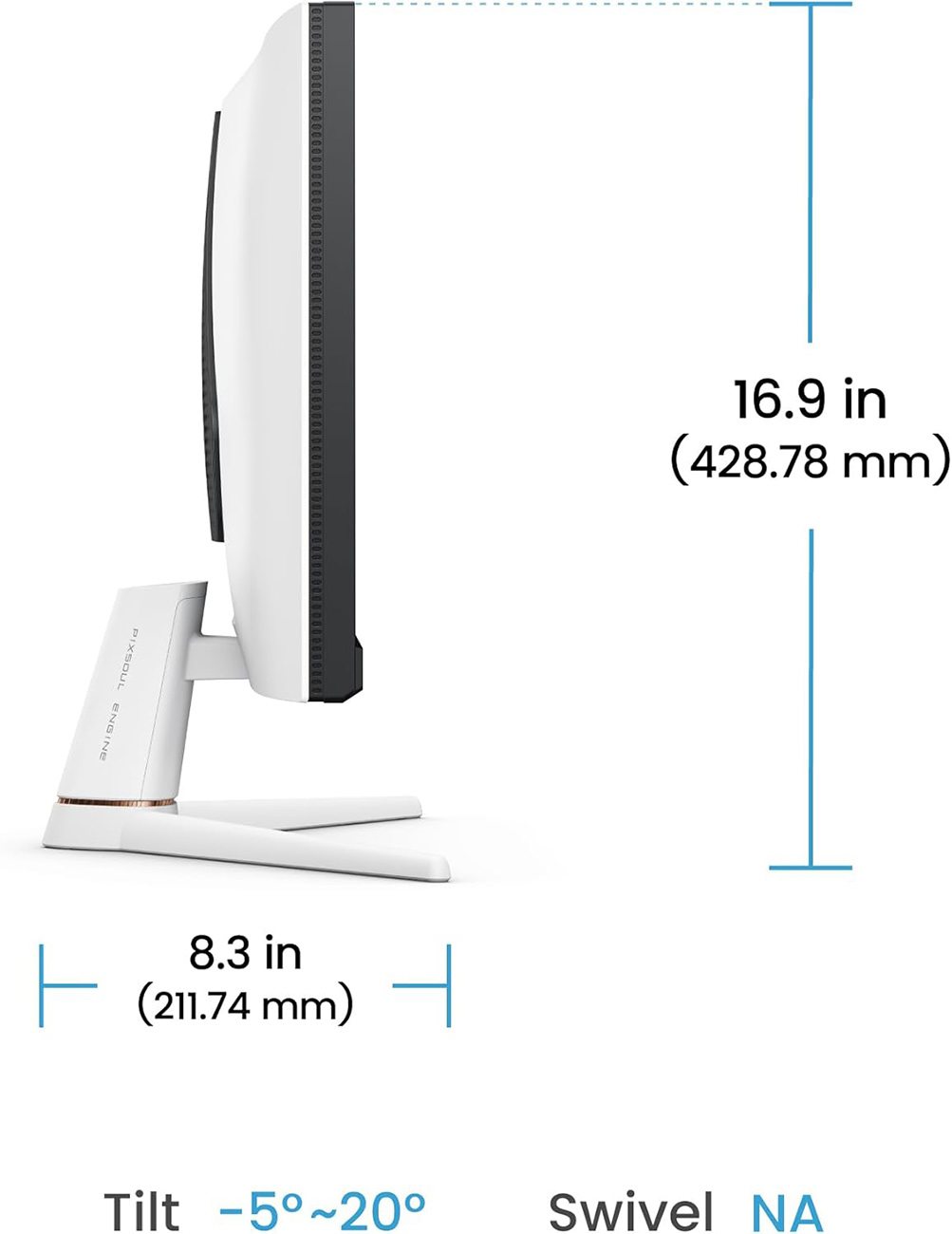 Adjustable stand with tilt and swivel functions for customized viewing angles.