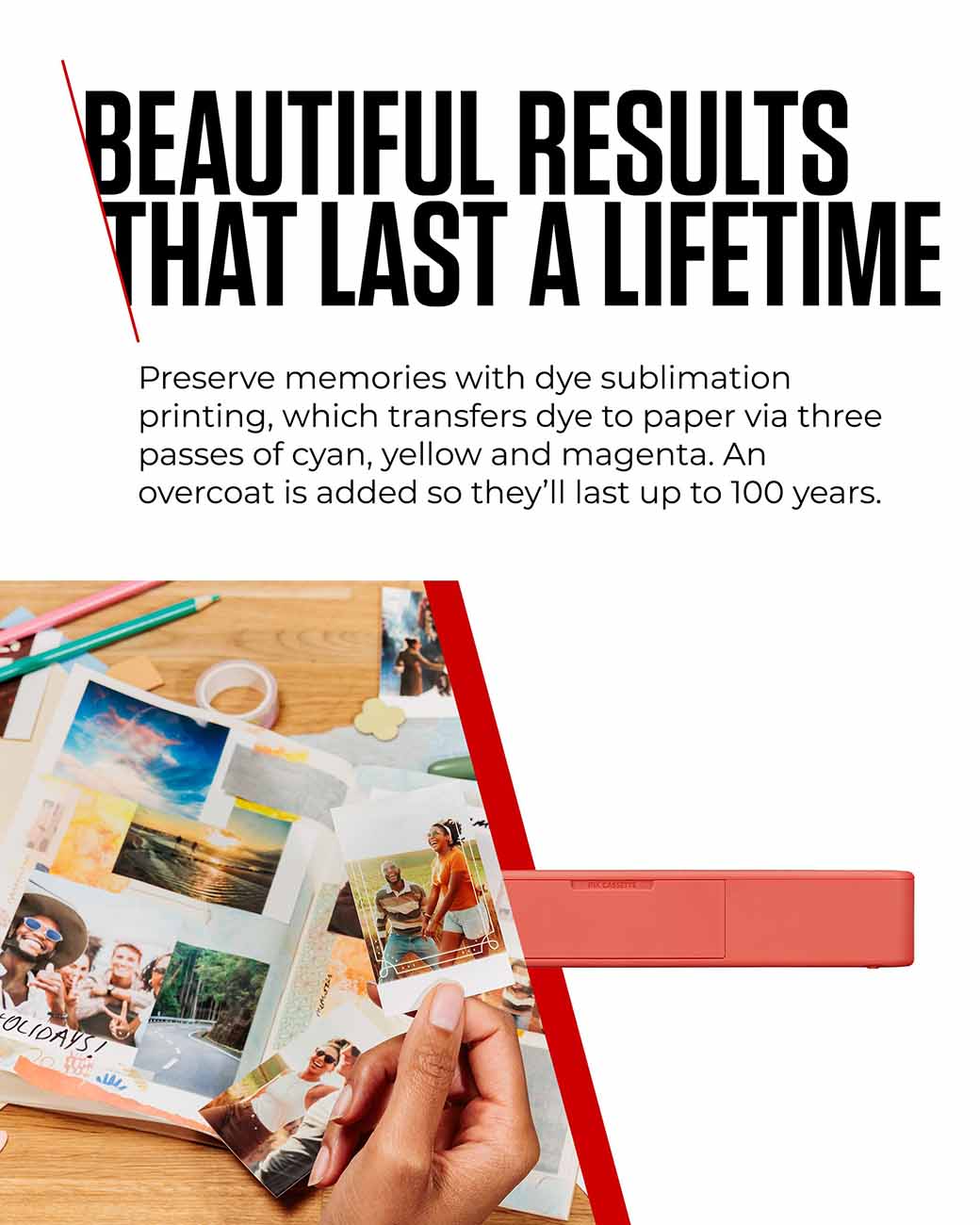 Delivers high-quality prints with vibrant colors that last up to 100 years.