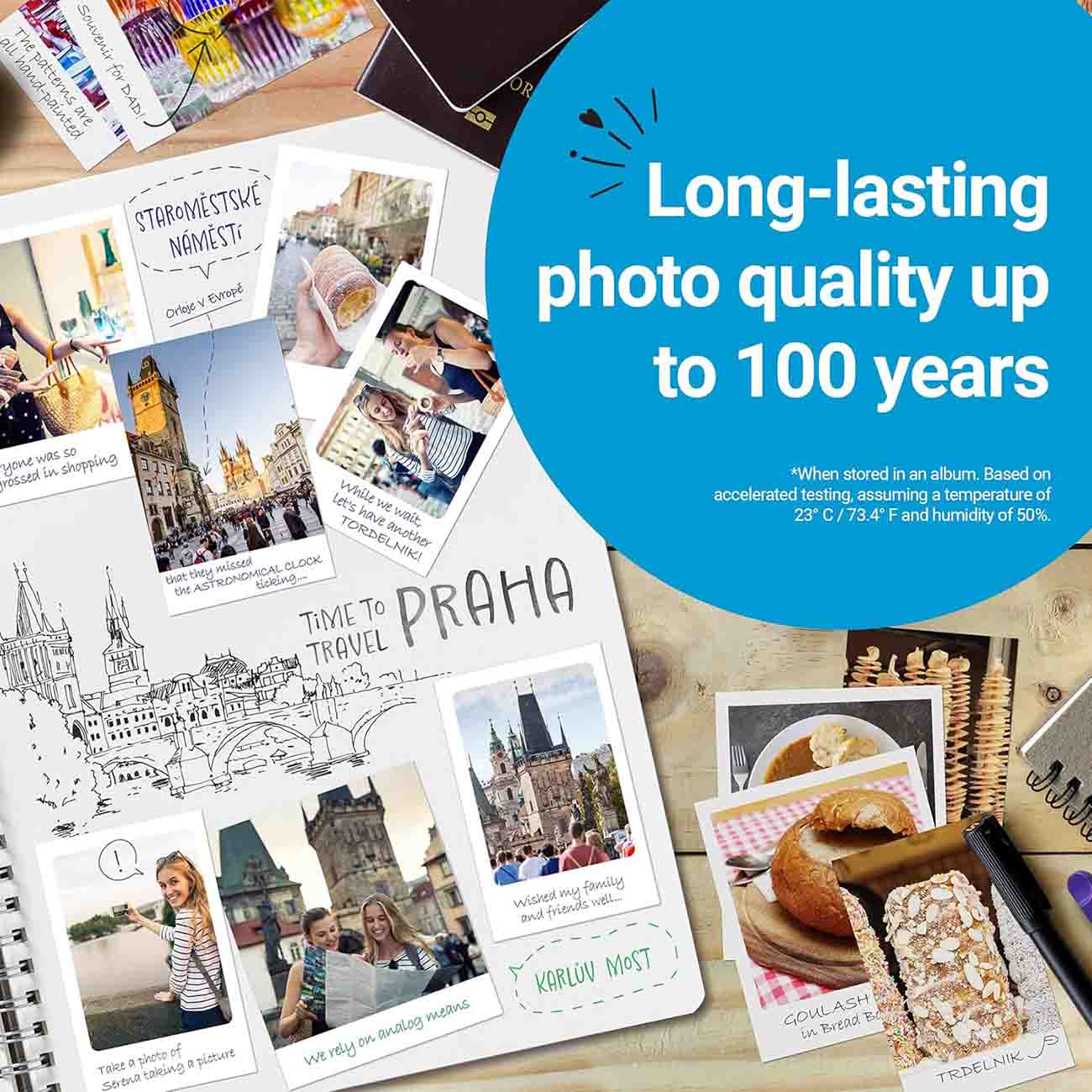 Delivers high-quality prints with vibrant colors that last up to 100 years.