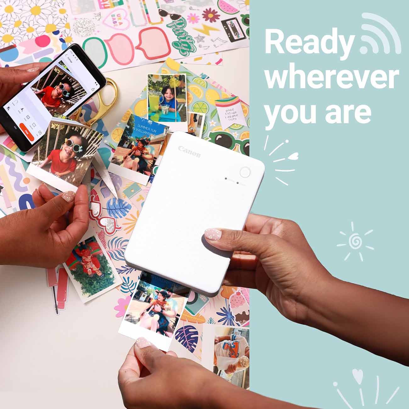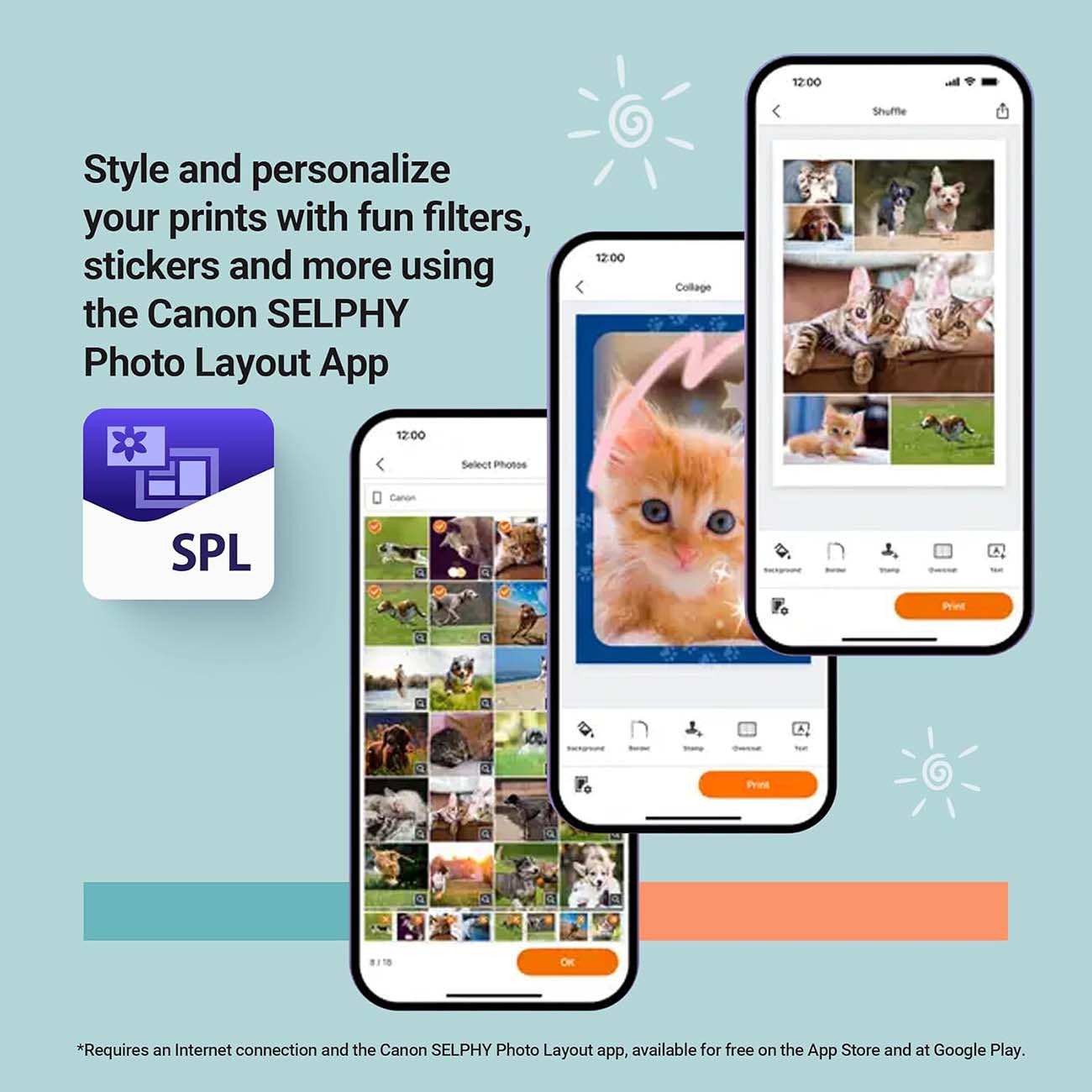 Supports iPhone and Android through the SELPHY Photo Layout app.