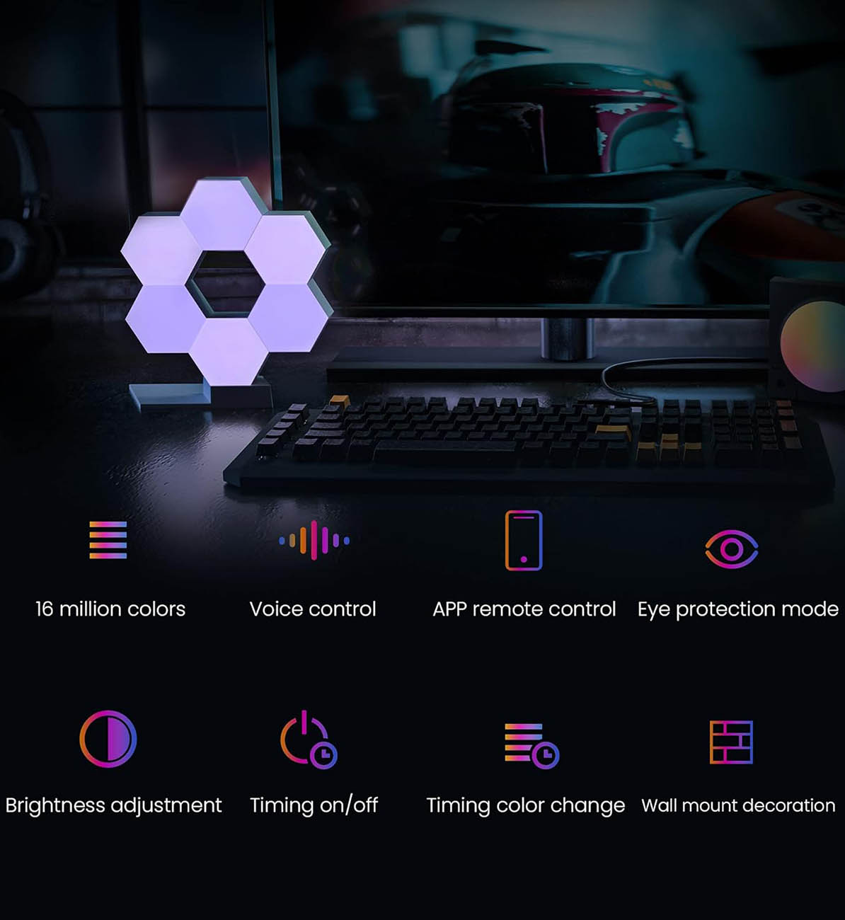 Offers pure RGB lighting — choose from 16 million colors.