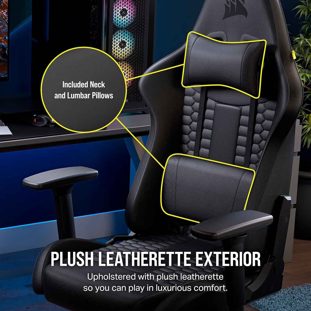 Comes with a neck pillow and lumbar support cushion.