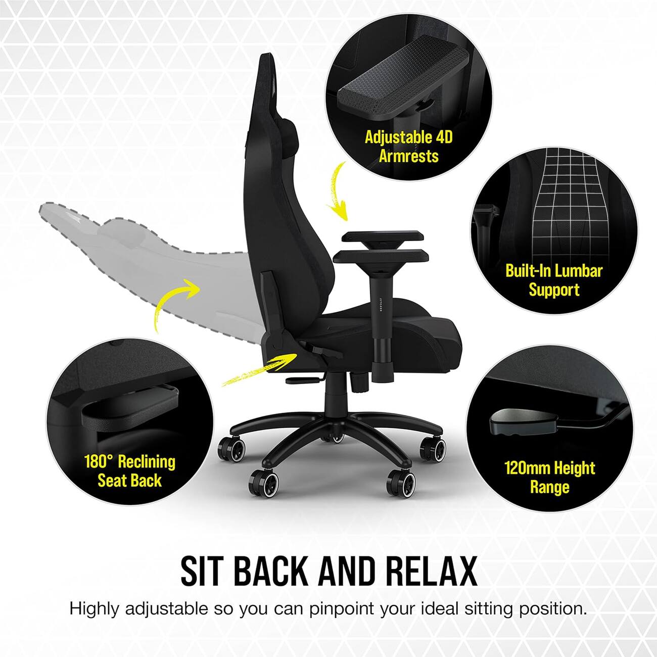 Chair arms are easily adjustable and customizable.