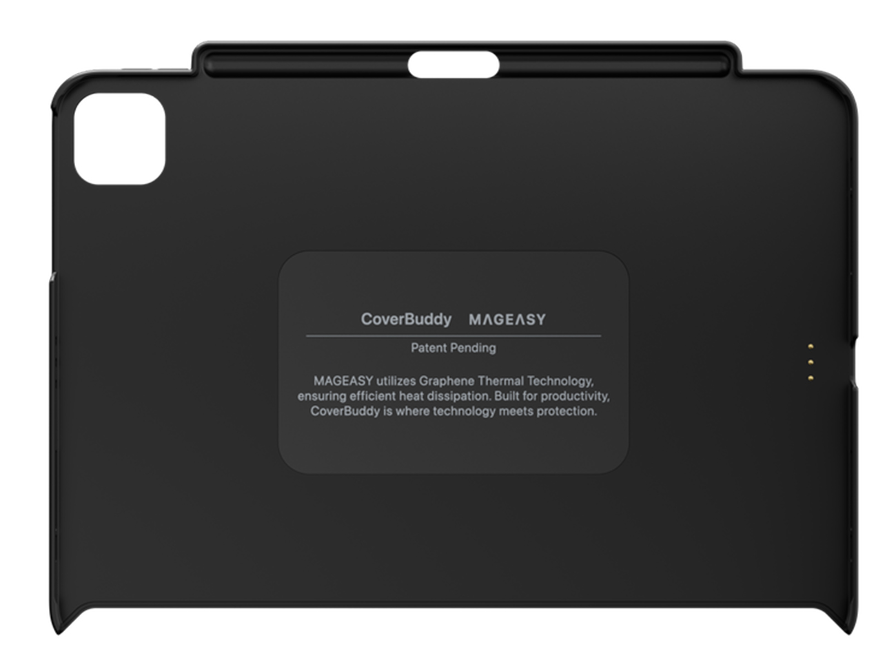 Made from Graphene material to help dissipate heat properly while using the iPad.