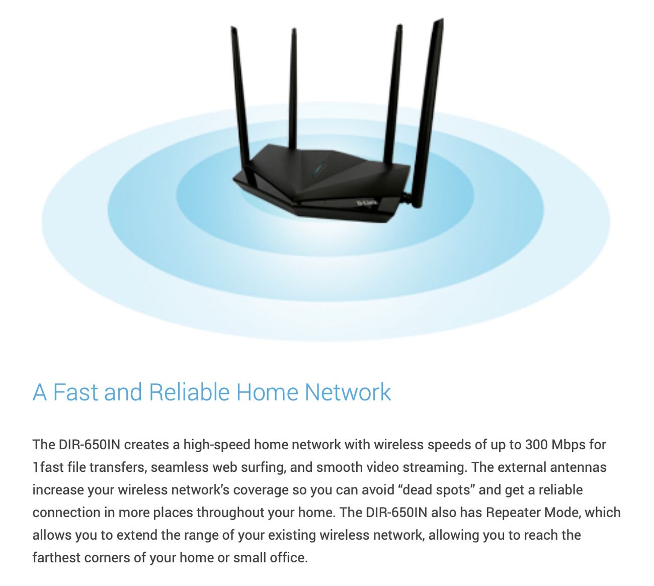 DIR-650IN Wireless N300 Router is an attractive, high-performance router that makes it to share your broadband Internet connection with all your devices