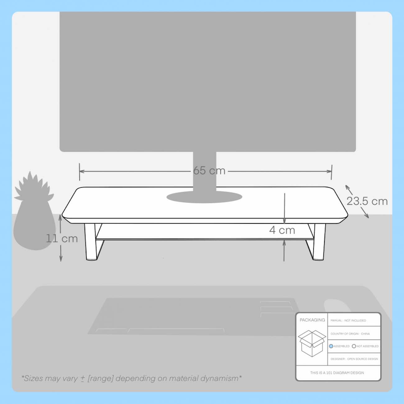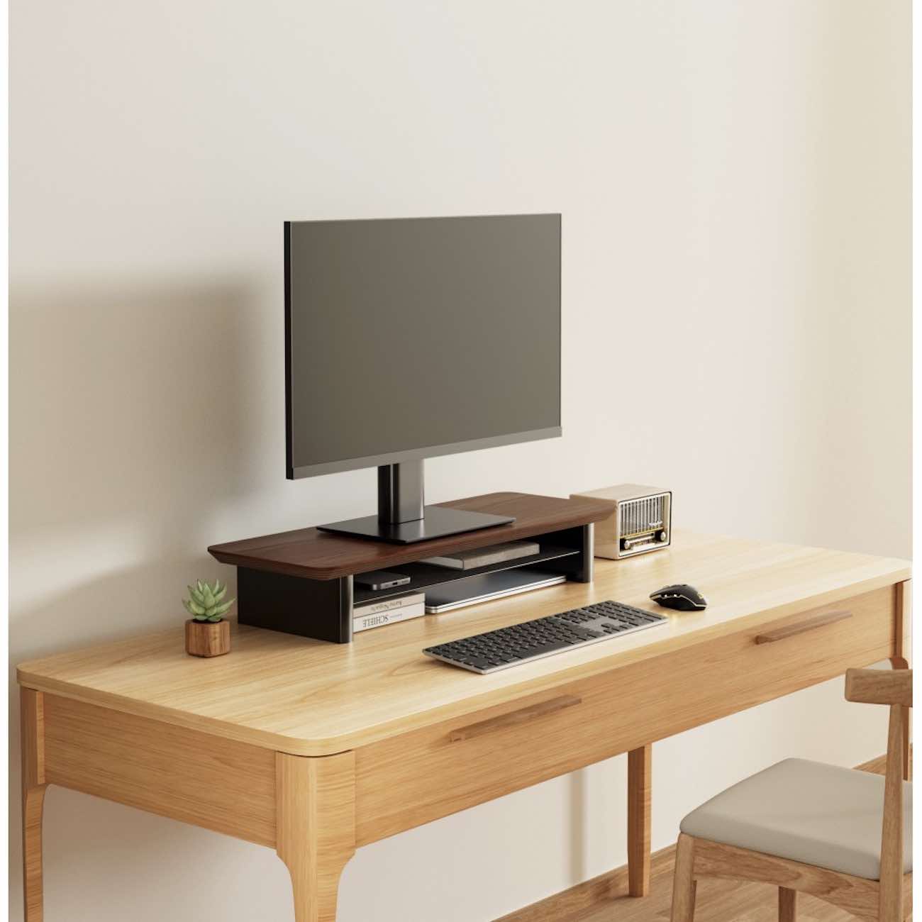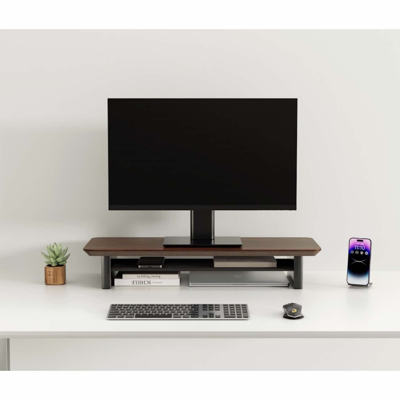 Elevates the monitor to provide an optimal viewing angle.