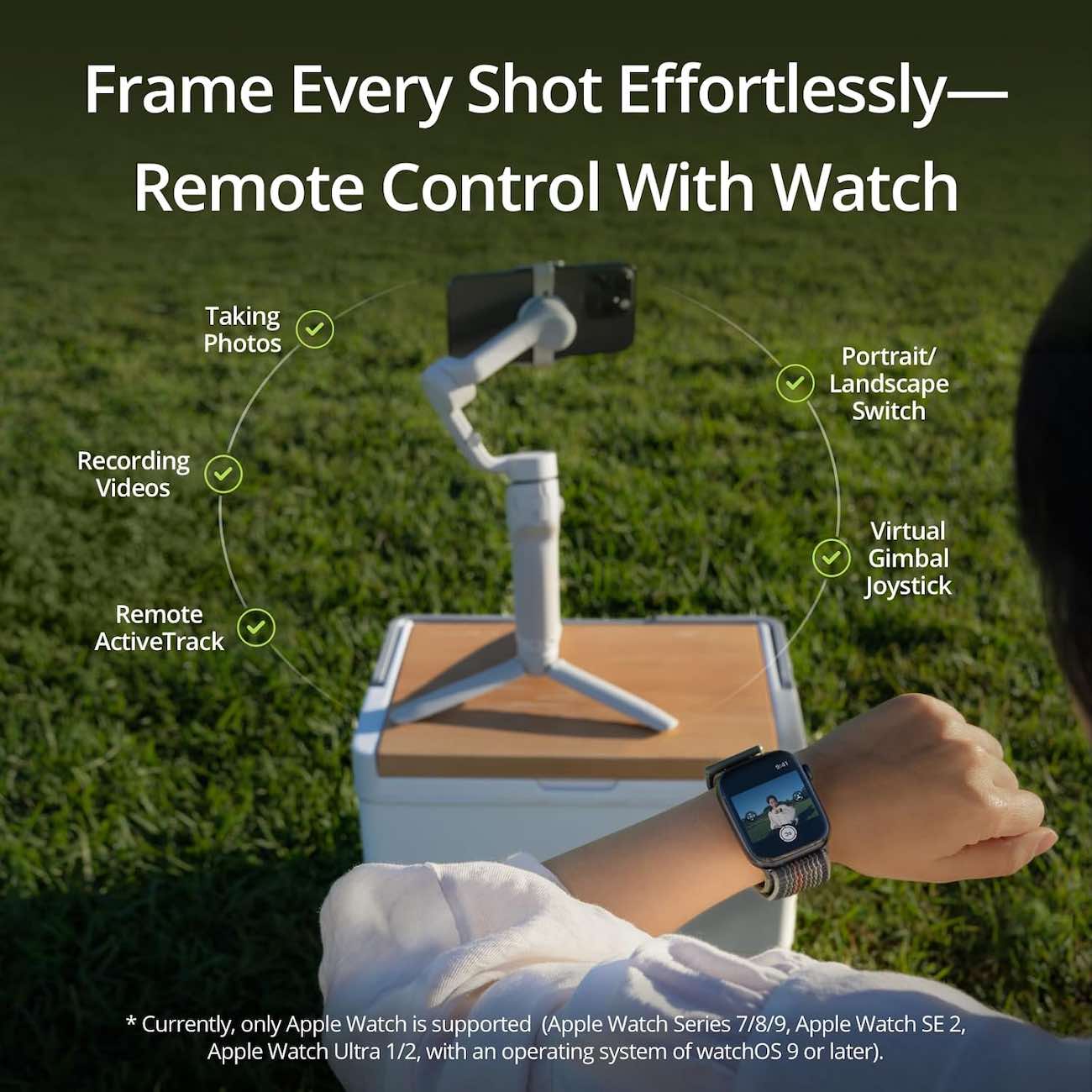 One of the most amazing features is that once you install the DJI Mimo app on your Apple Watch .. you can use the watch as a remote control to adjust the gimbal angle and record videos and photos directly from the watch.