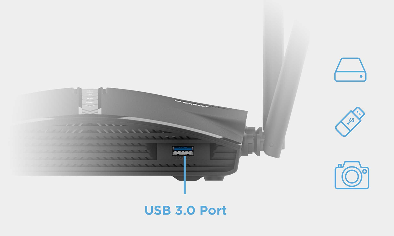 Comes with 4 external antennas and SmartBeam for improved signal range and direction.