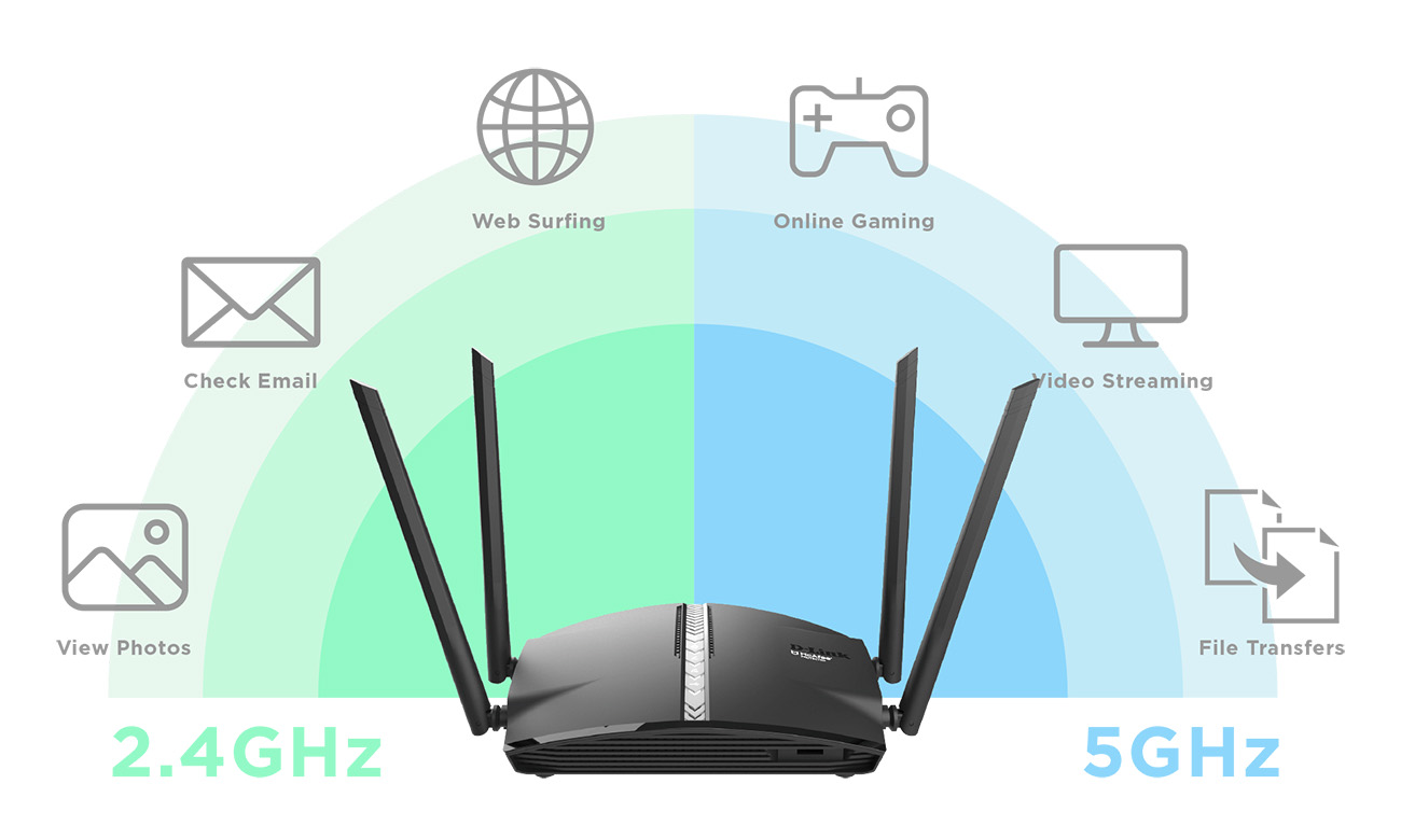 Delivers impressive speeds up to 400Mbps (2.4GHz) and 867Mbps (5GHz).