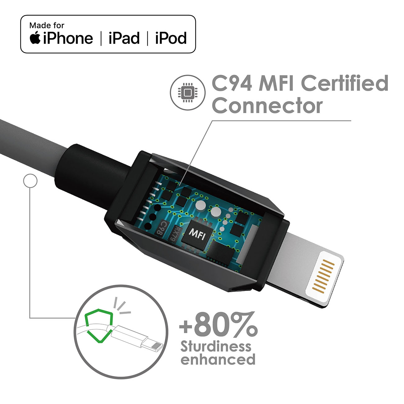 Apple MFi certified.