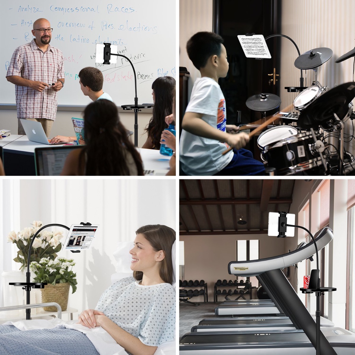 The stand’s arm is equipped with soft silicone padding on both sides to securely hold your device without scratching or damaging it.