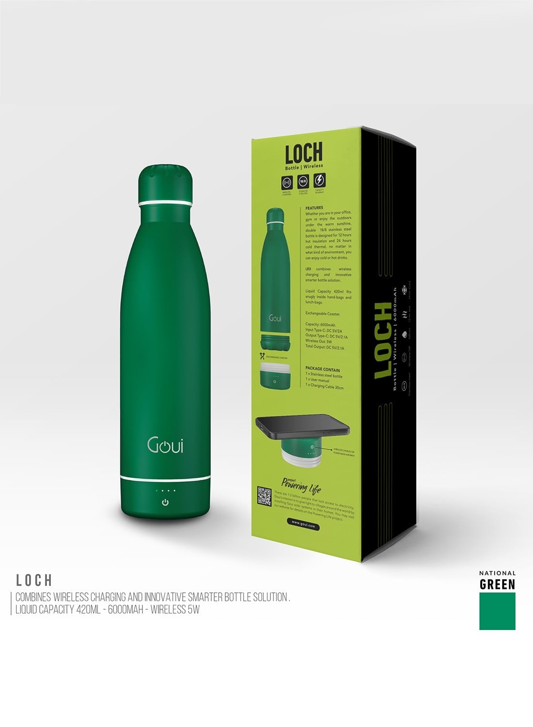 Goui Smart Water Bottle / Built-in Power Bank / Wireless Charging / 420ml / National Green in Qatar