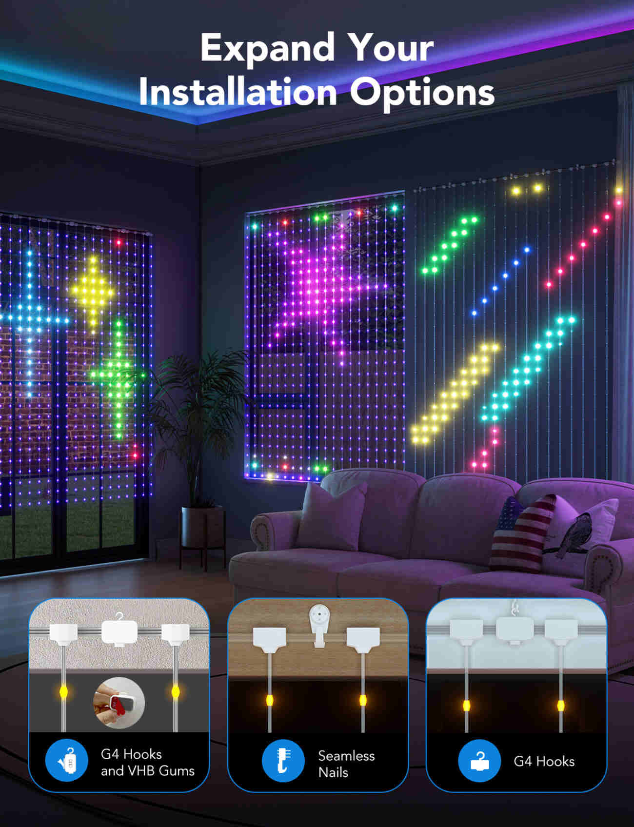 You can connect the curtain lights to Govee smart lights for even brighter illumination.