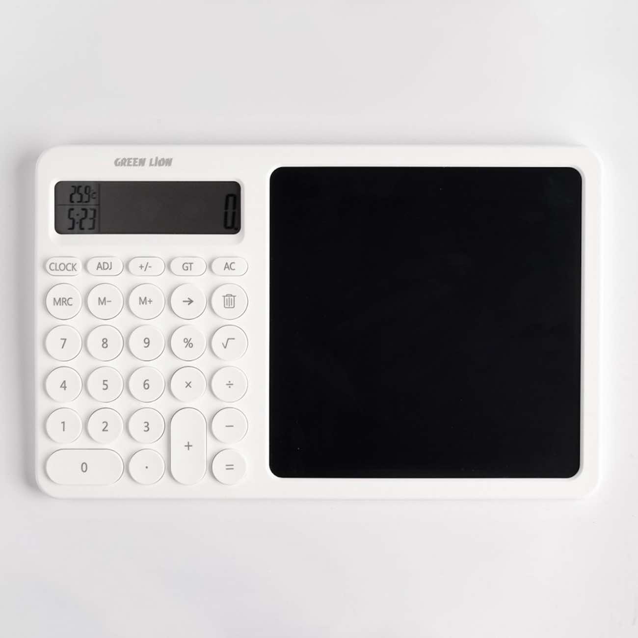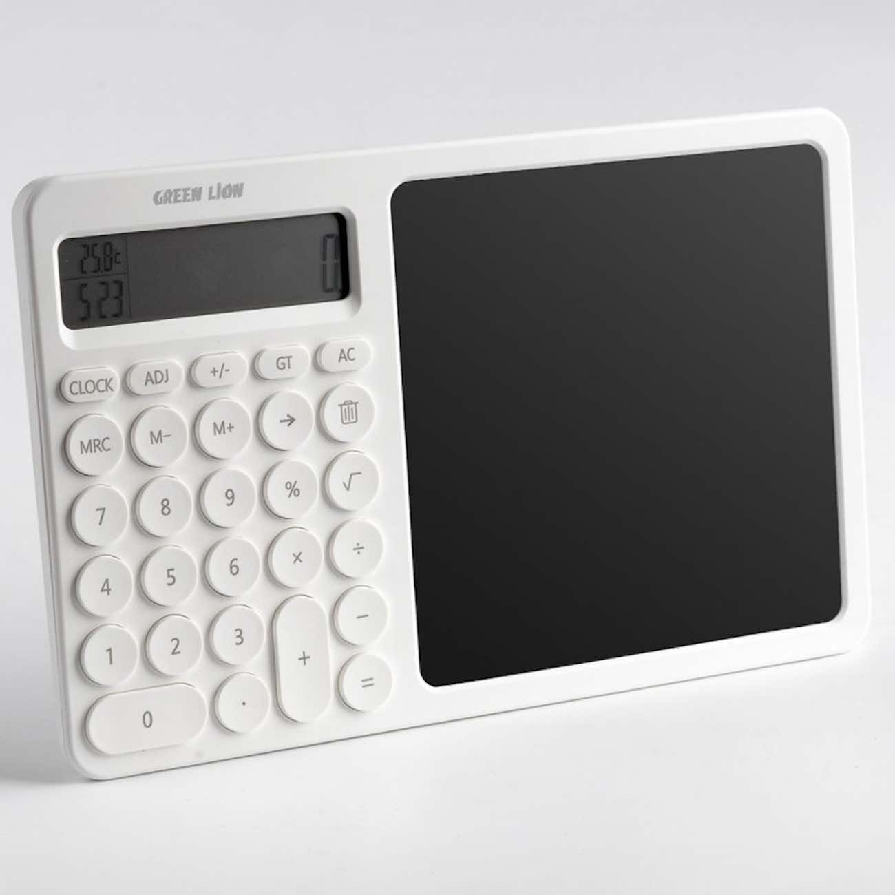An elegant design that combines a pen, writing pad, and calculator for taking notes and performing calculations.
