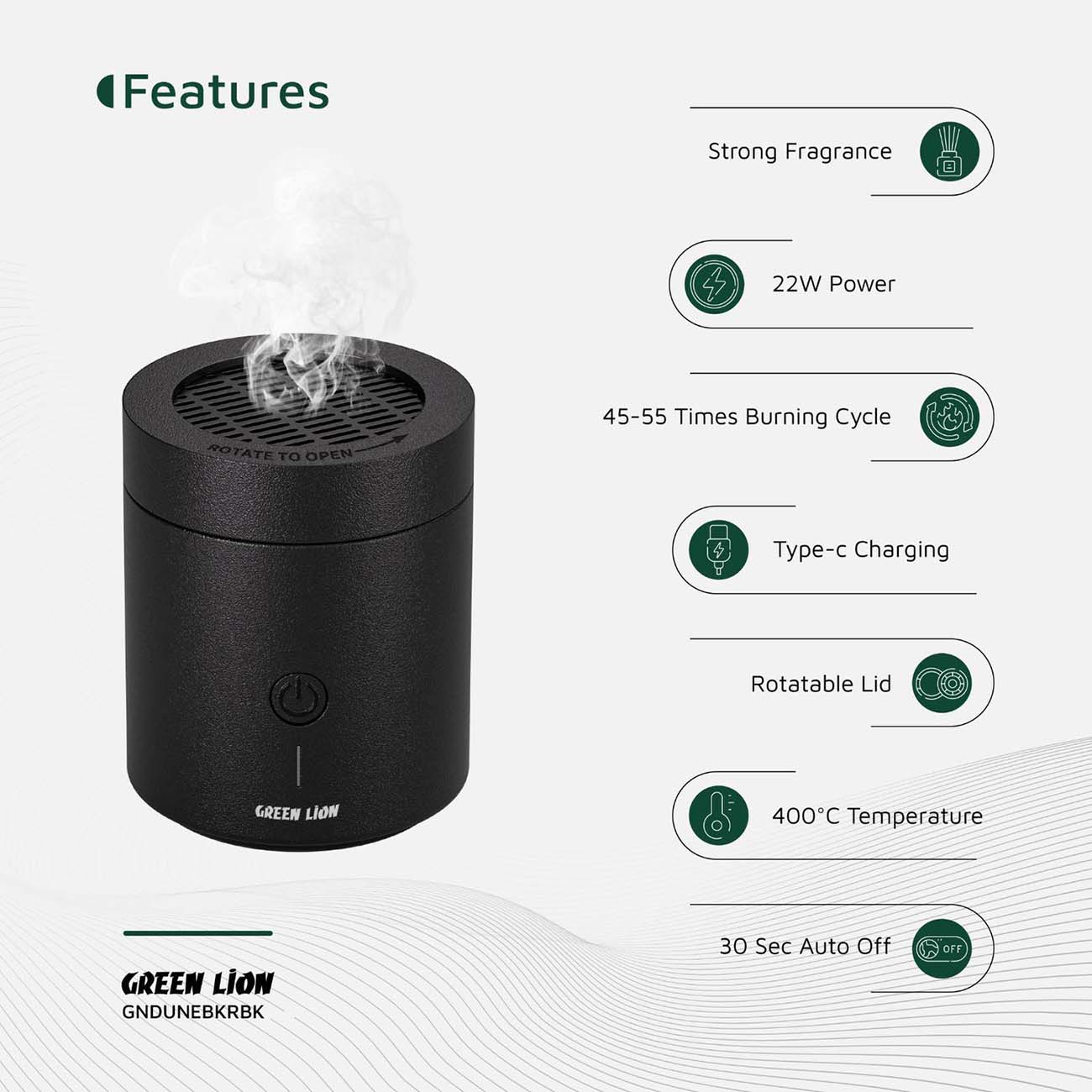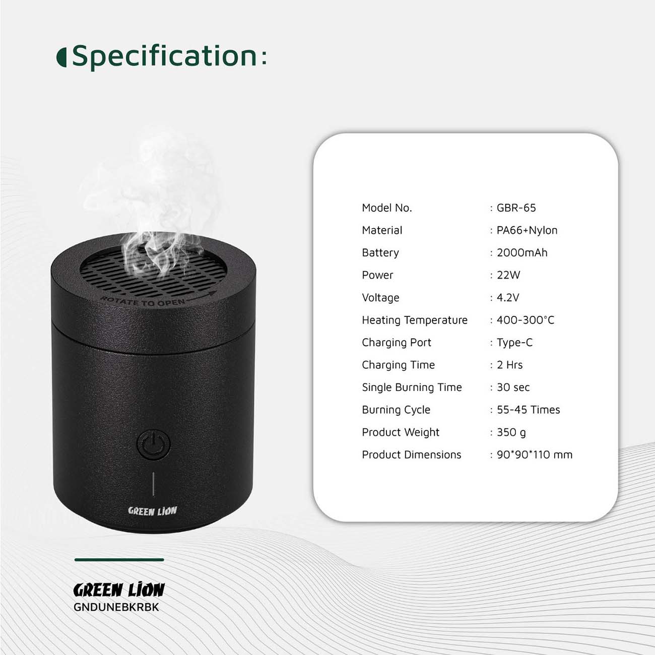 A practical .. high-quality .. and easy-to-use burner. All you need to do is turn it on: press the power button twice in a row .. and it will ignite the charcoal instantly .. no matches or lighters needed.
