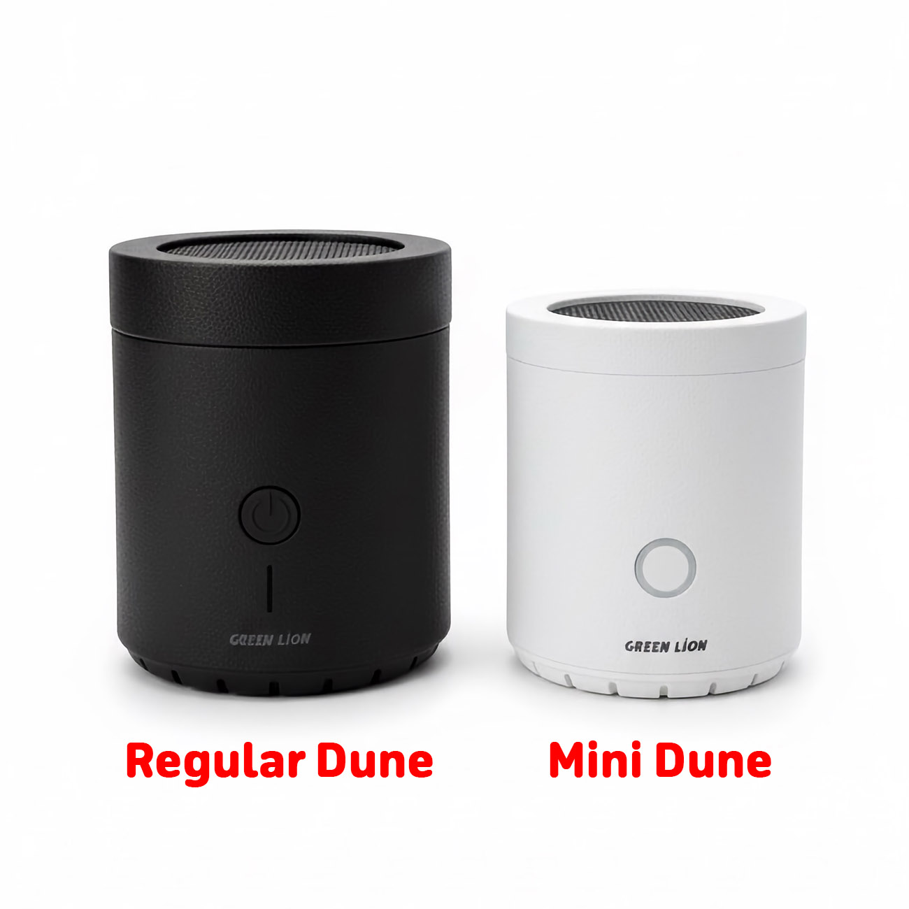What makes this burner different from the regular Dune burner is its compact size. You can easily place it in the cup holder inside your car. Product photos show a size comparison between the regular burner and the mini burner.