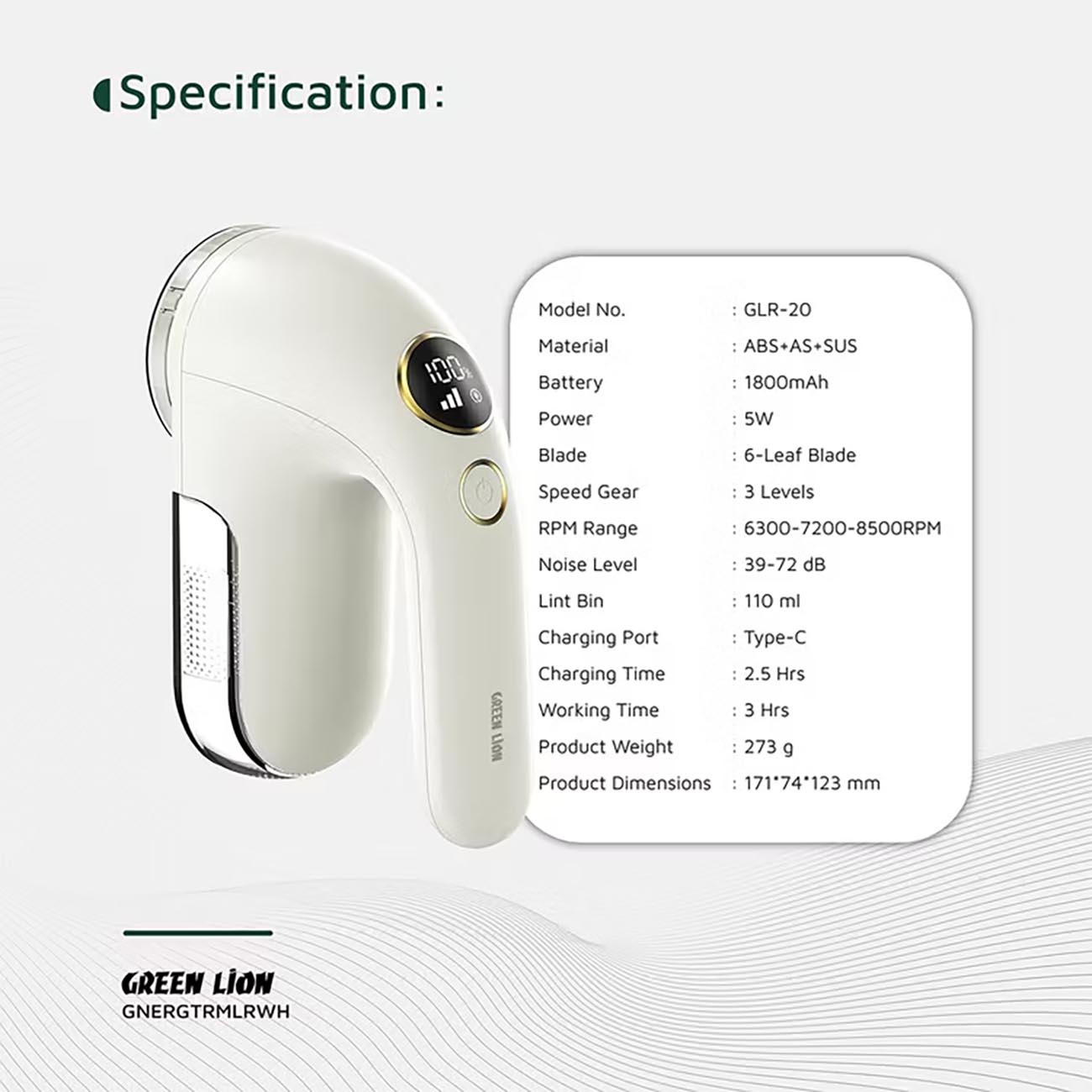 Powered by a rechargeable 1800mAh battery with USB-C charging.