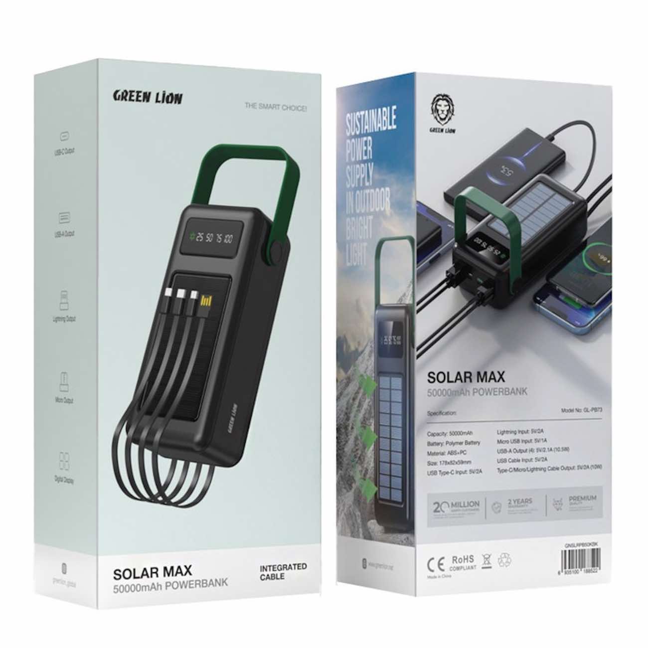 Power bank with a capacity of 50,000 mAh.