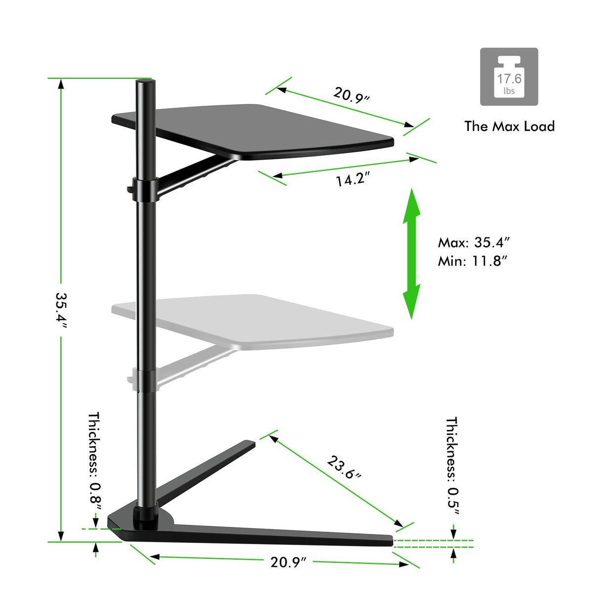 The laptop holder is low which make it can get under the bed or the table.