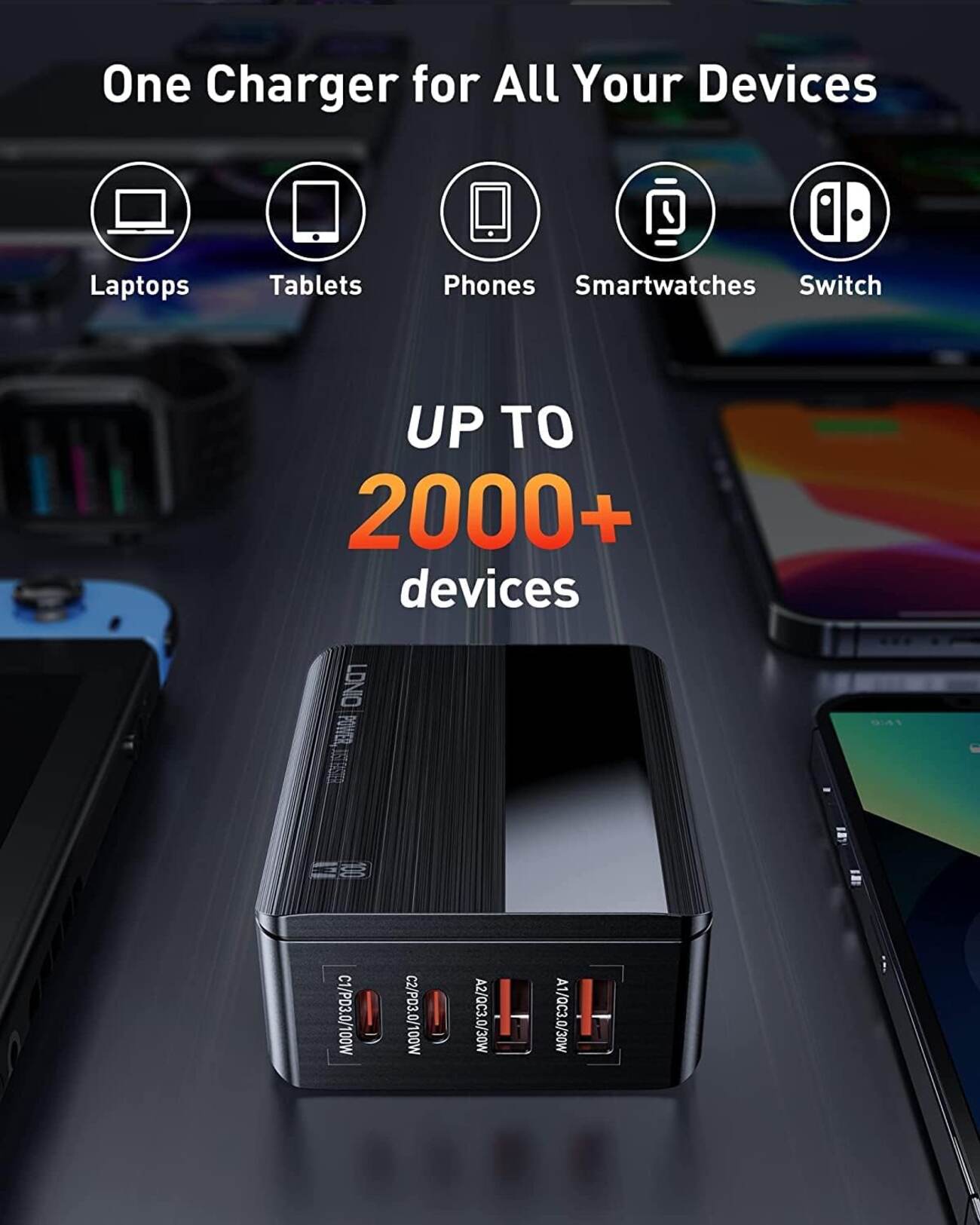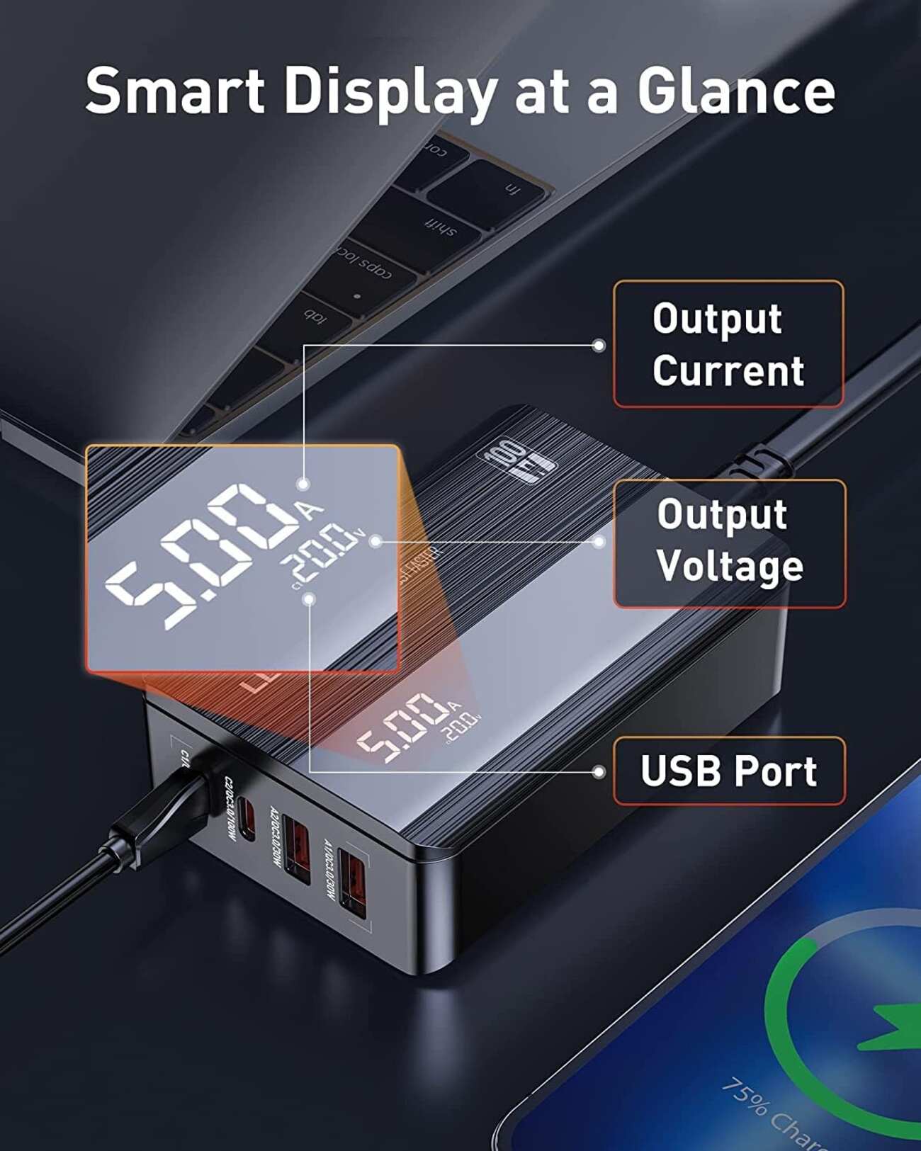 Features 4 ports: 2 USB and 2 Type-C ports.