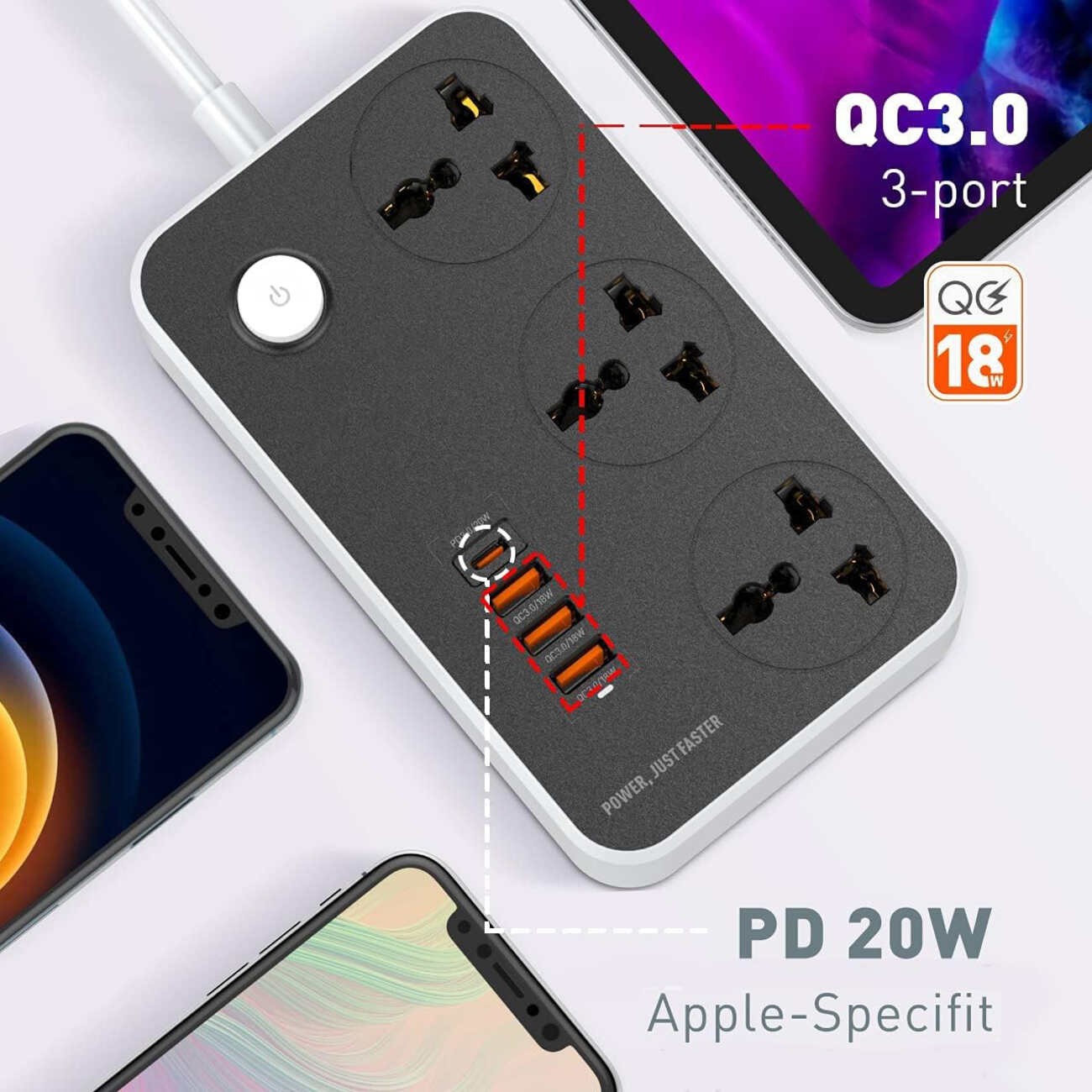 Equipped with 3 USB ports that support Qualcomm Quick Charge 3.0 fast charging technology.