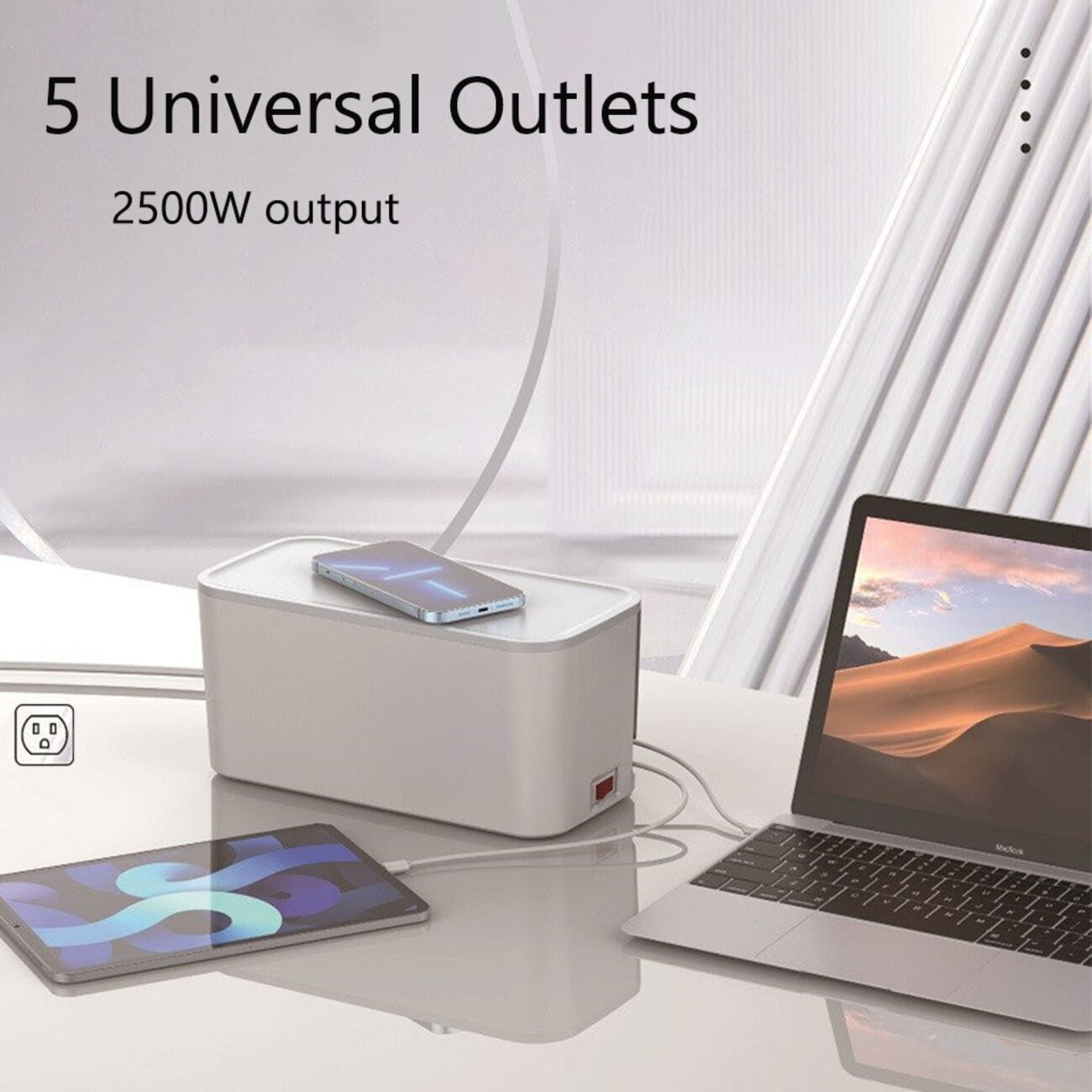 It's a box containing an adapter with 5 international outlets, meaning it's a power strip that can accommodate various plug types.