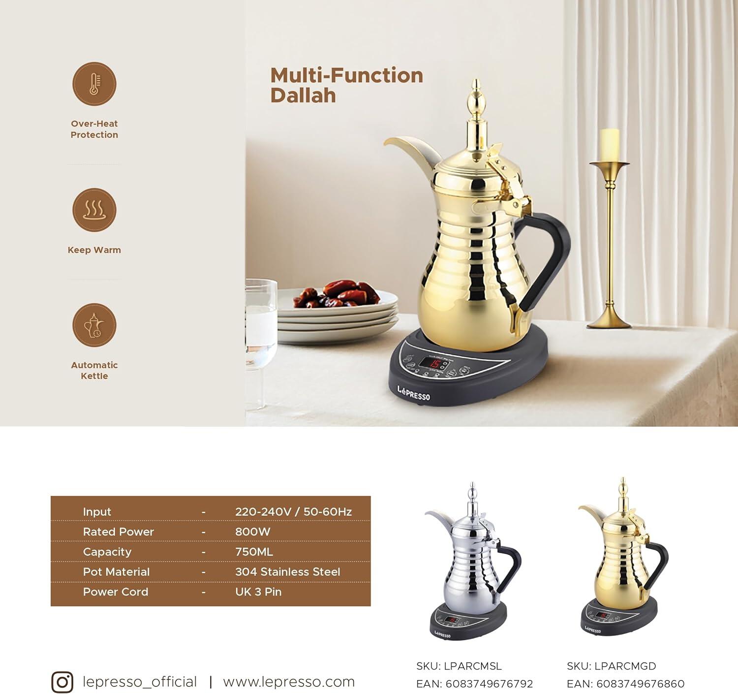 Innovative and practical electric dallah (Arabic coffee pot) from LePresso.