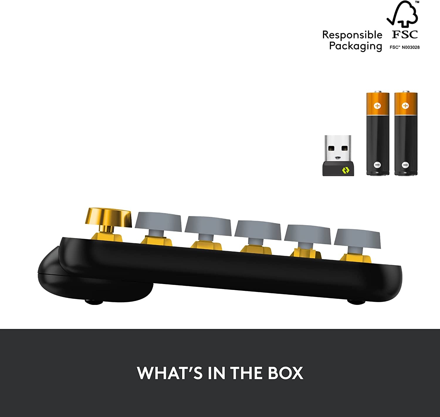 Get loud, get retro: Shout your inner retro out loud with a bold color combination of black, grey and arcade game yellow, allowing you to make a performance with POP Keys wireless keyboard in Blast