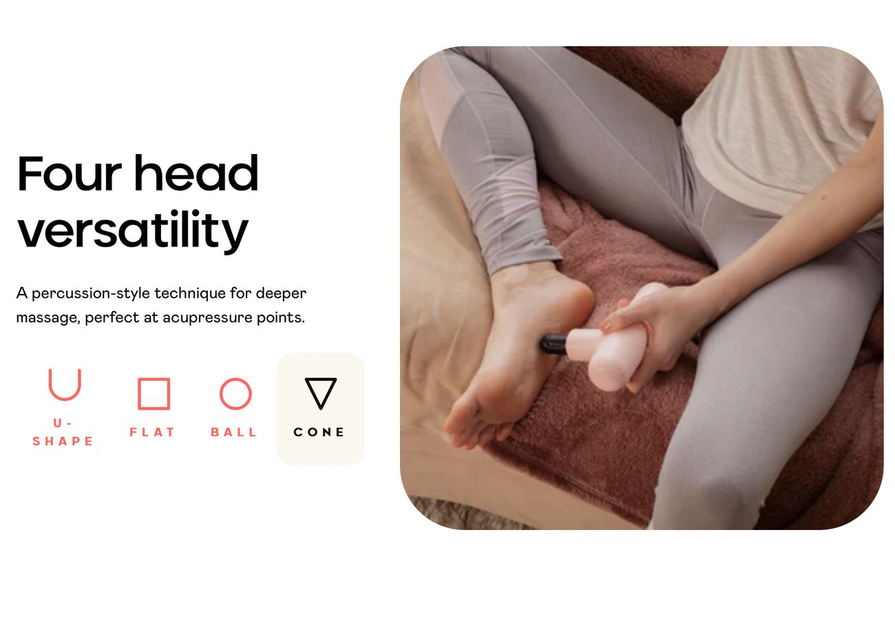 4 Interchangeable Heads: Lola package comes with 4 interchangeable attachments for different massage techniques.